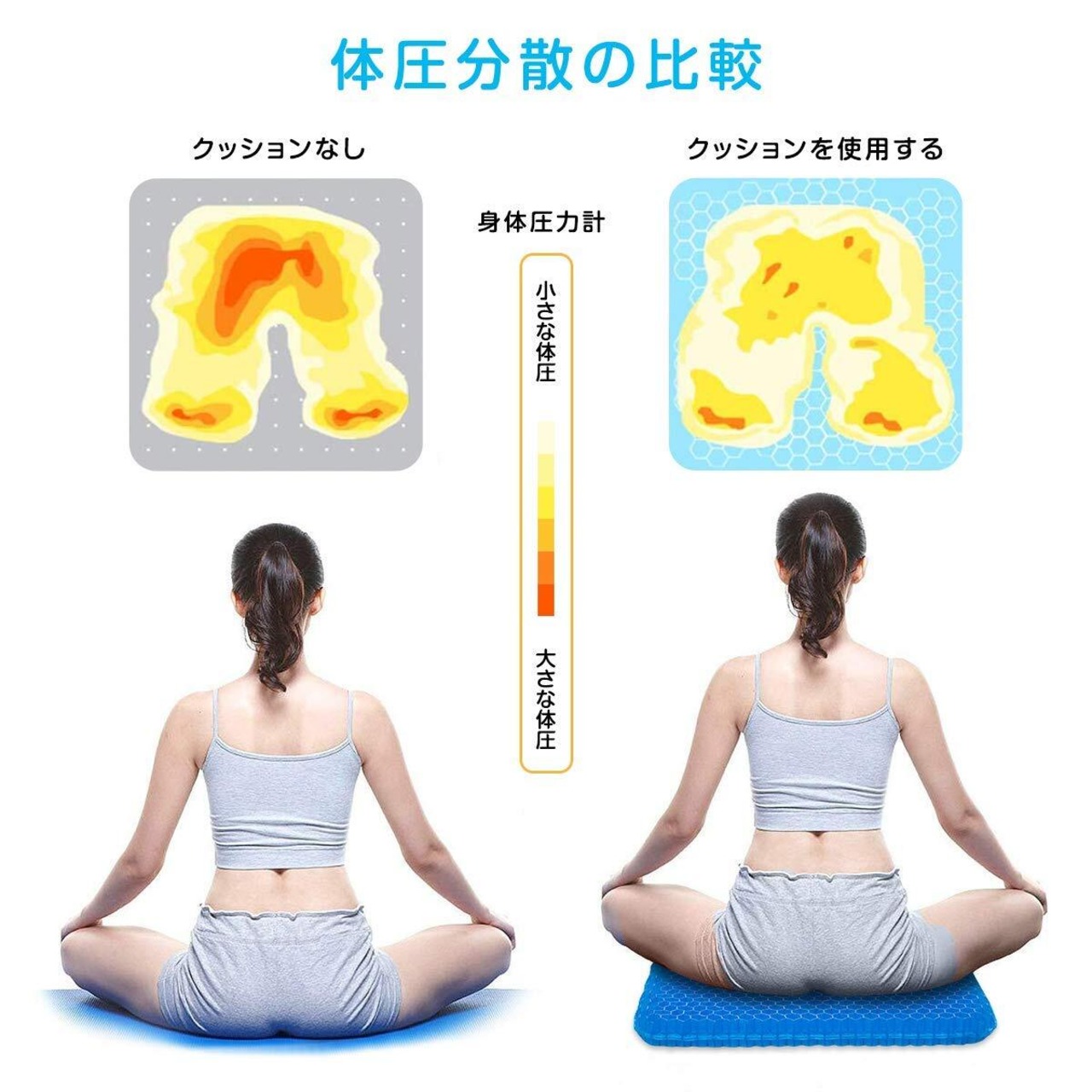 ゲルクッション 大きめサイズ 42×42×4cm 無重力クッション 健康クッション 二重設計 通気 体圧分散 腰痛対策 姿勢矯正 滑り止め 自宅 オフィス 椅子 運転席 適用 クッションカバーカバー付き