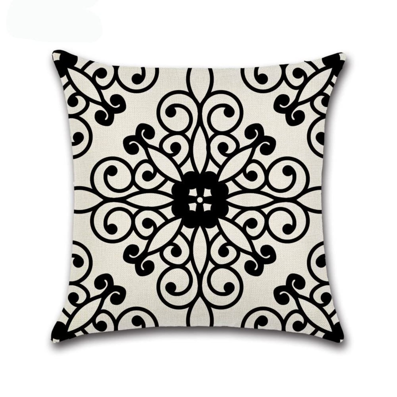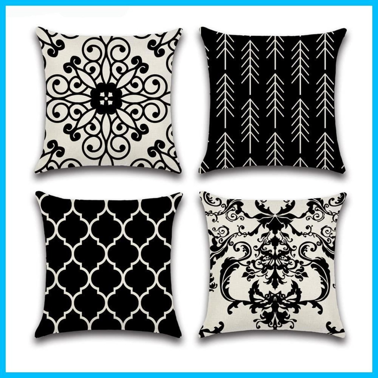 クッションカバー 45 45 4枚セット 北欧 幾何学模様 違う柄 リネン 亜麻 可愛い おしゃれ ファスナー モダン 家庭装飾 車 飾り 四季通用 インテリア ベッドルーム (幾何学模様-ブラック)