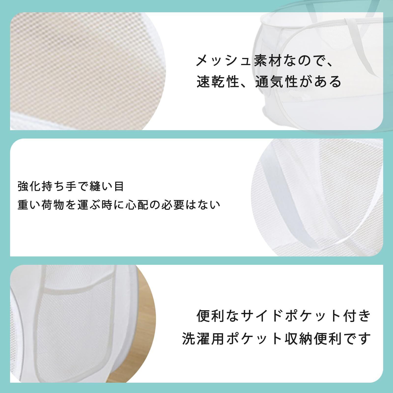 AYO 洗濯カゴ 洗濯かご 洗濯籠 ランドリーバスケット ランドリーバッグ ランドリーボックス 洗濯物入れ 脱衣かご 袋 かご 折りたたみ メッシュ 持ち運び可能 大容量 70L 超軽量 省スペース 収納 自立 ハンドル付き 横型 白