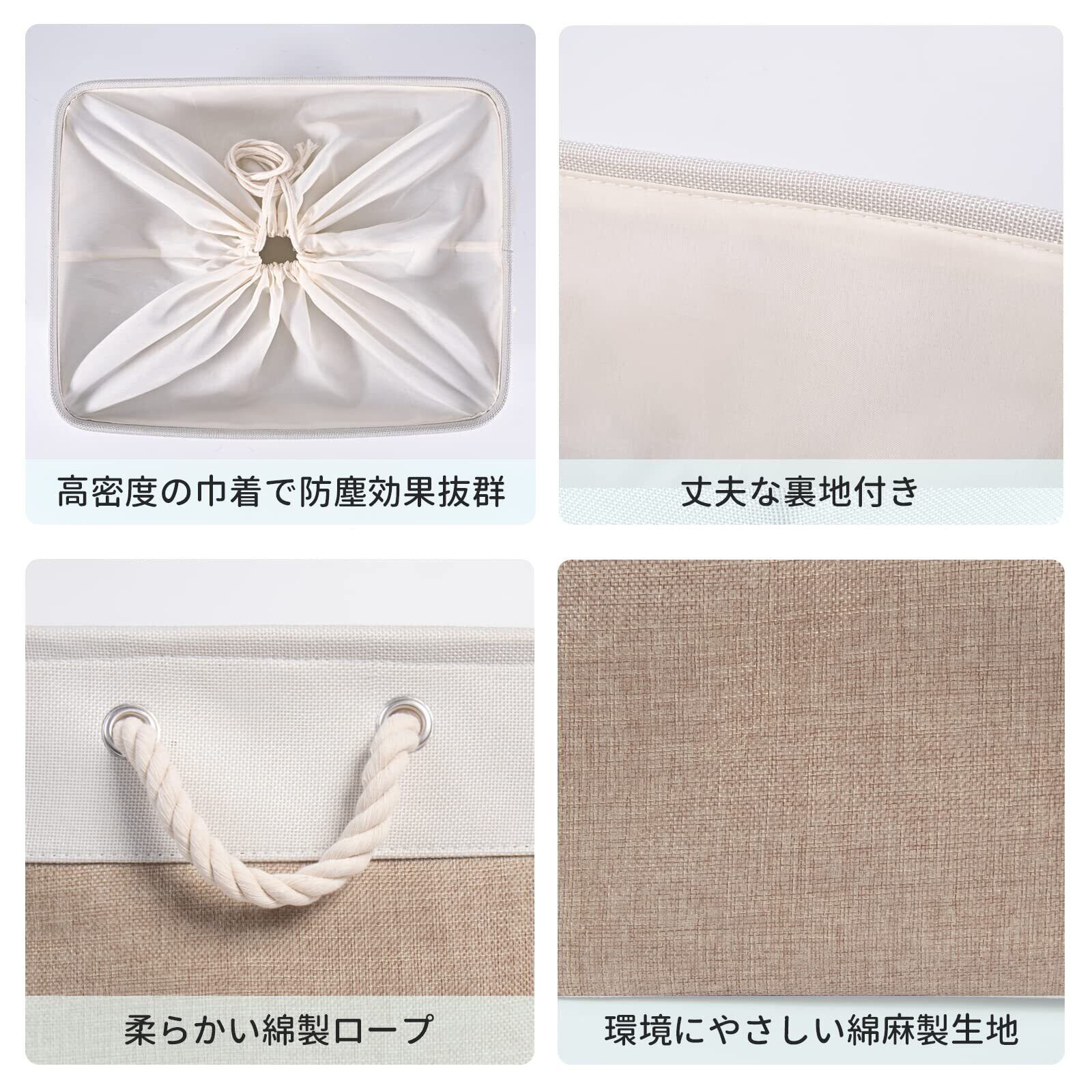 【在庫セール】【 限定】STVICTORY 収納バスケット 収納かご 3個セット 40×30×24cm 無臭 巾着 取っ手付き オシャレな収納ボックス ランドリーバスケット ストレージバスケット 布 洗濯かご インテリア雑貨 衣類 小物収納 引き出し 折り畳み式 綿麻製 防水 防湿 防塵 高耐久性 長方形 (ホワイトベージュ)