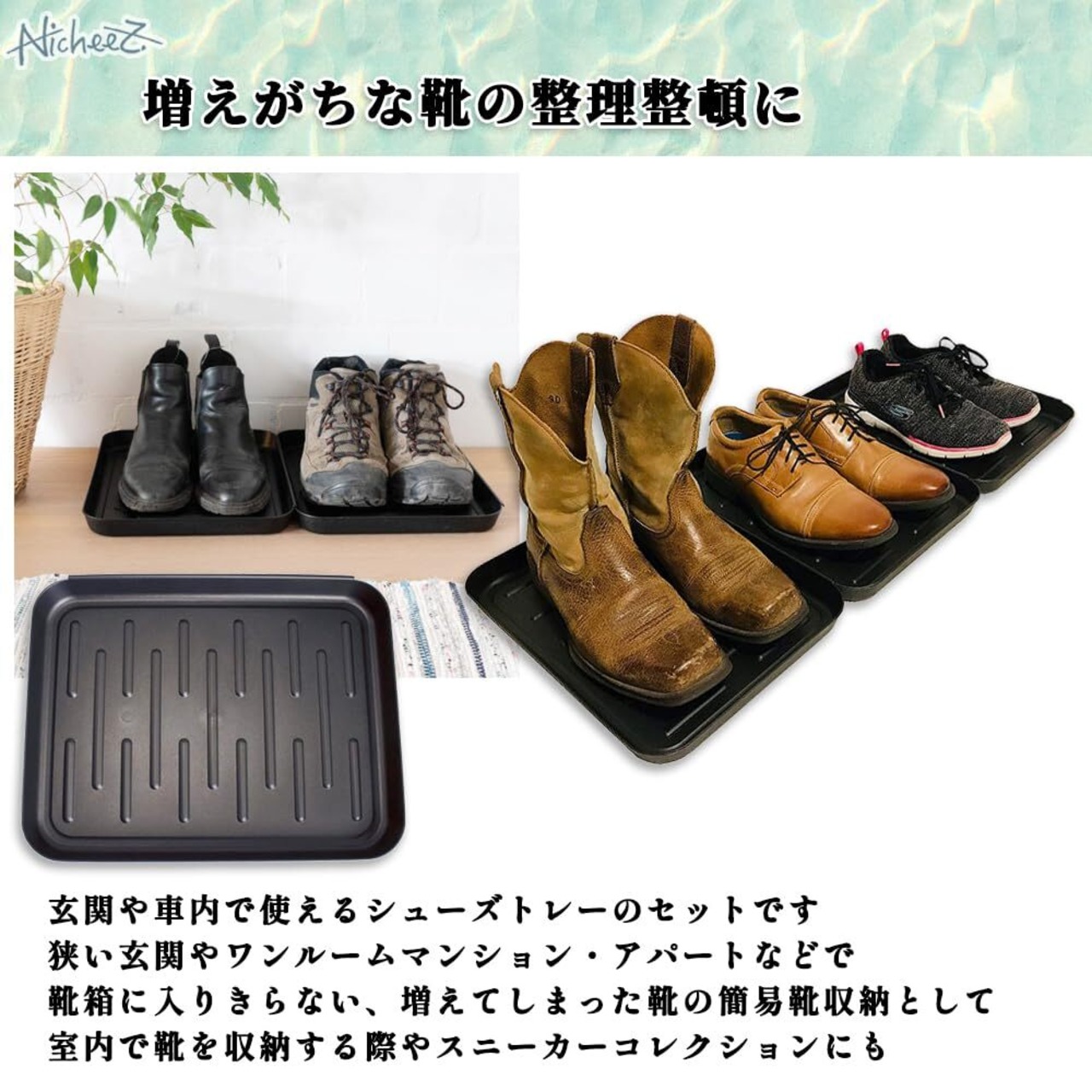 シューズトレイ シューズマット 靴置き 車 土足禁止 汚れ対策 収納 ラゲッジ 玄関 サンダル ベランダ バルコニー (ブラック/3枚セット)