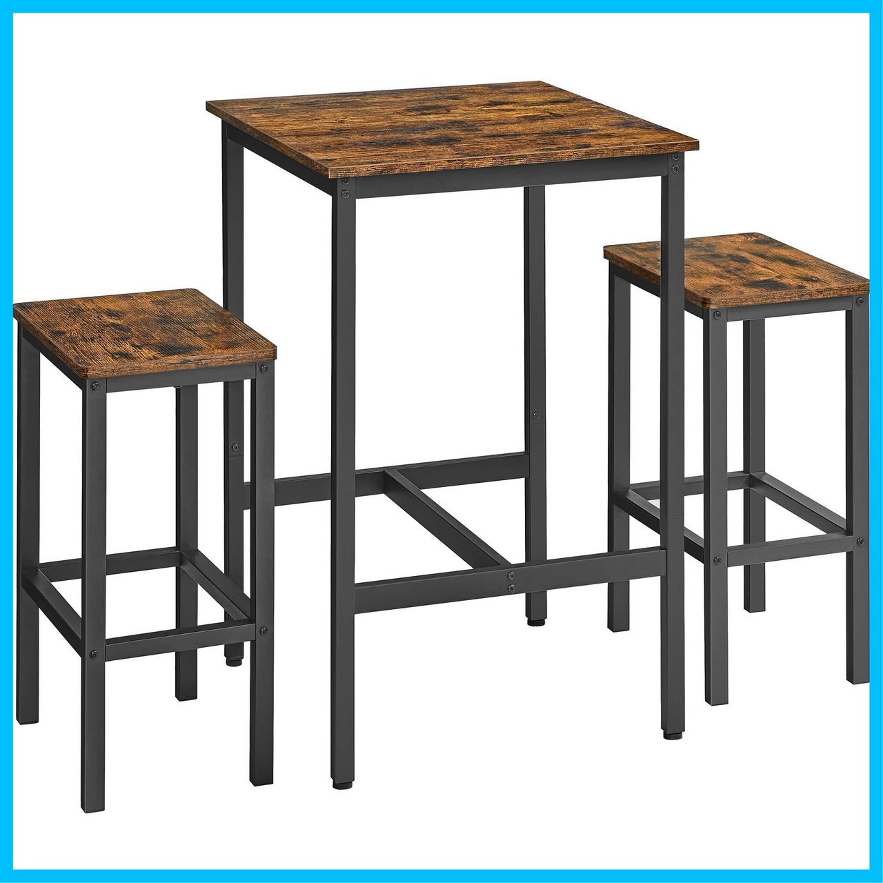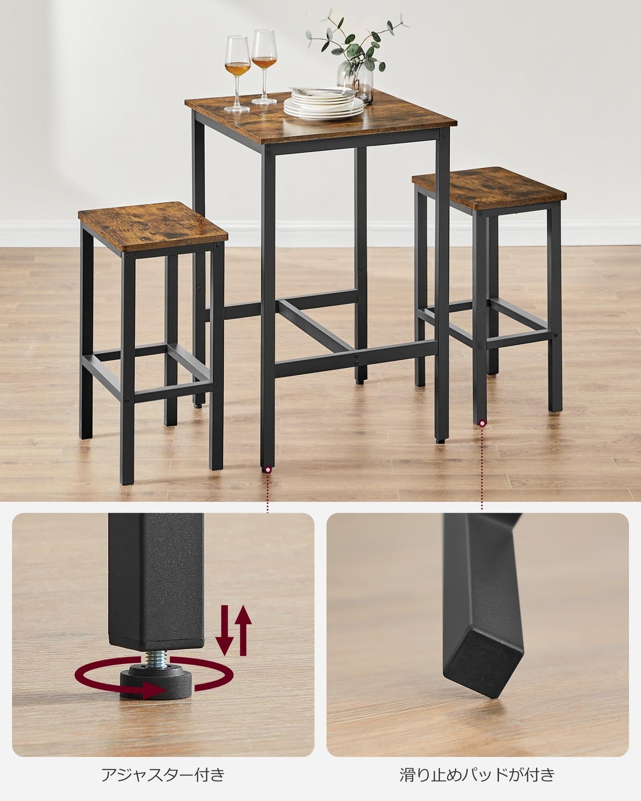 VASAGLE カウンターテーブル セット 3点セット パソコンデスク 高さ90cm 幅60cm 省スペース 天然木 ハイテーブル ダイニング おしゃれ カウンターデスク LBT017B01