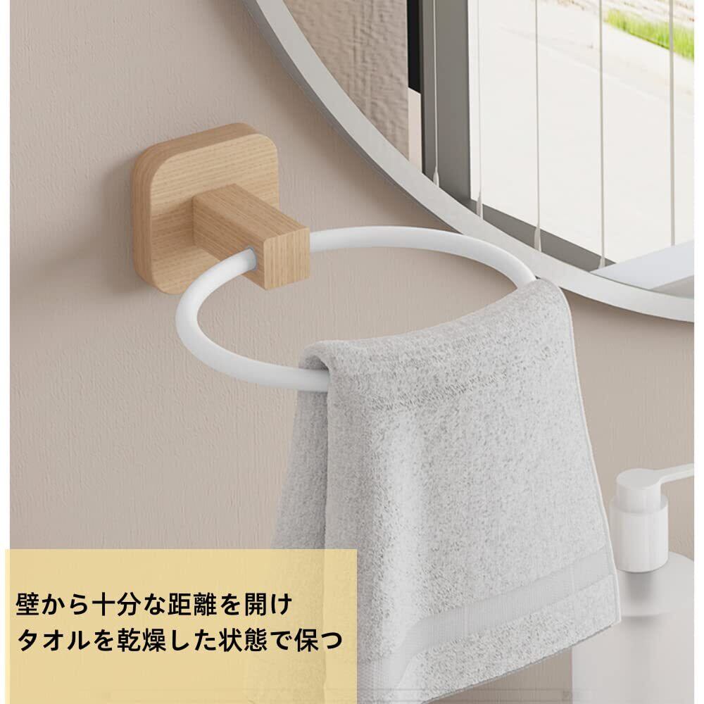 タオルリング タオル掛け 洗面所 強力粘着 タオルハンガー 木製 アンティーク タオルホルダー バスタオル掛け 壁掛け おしゃれ トイレ キッチン バスルーム アクセサリー お風呂 浴室 洗面所(胡桃木ブラック)