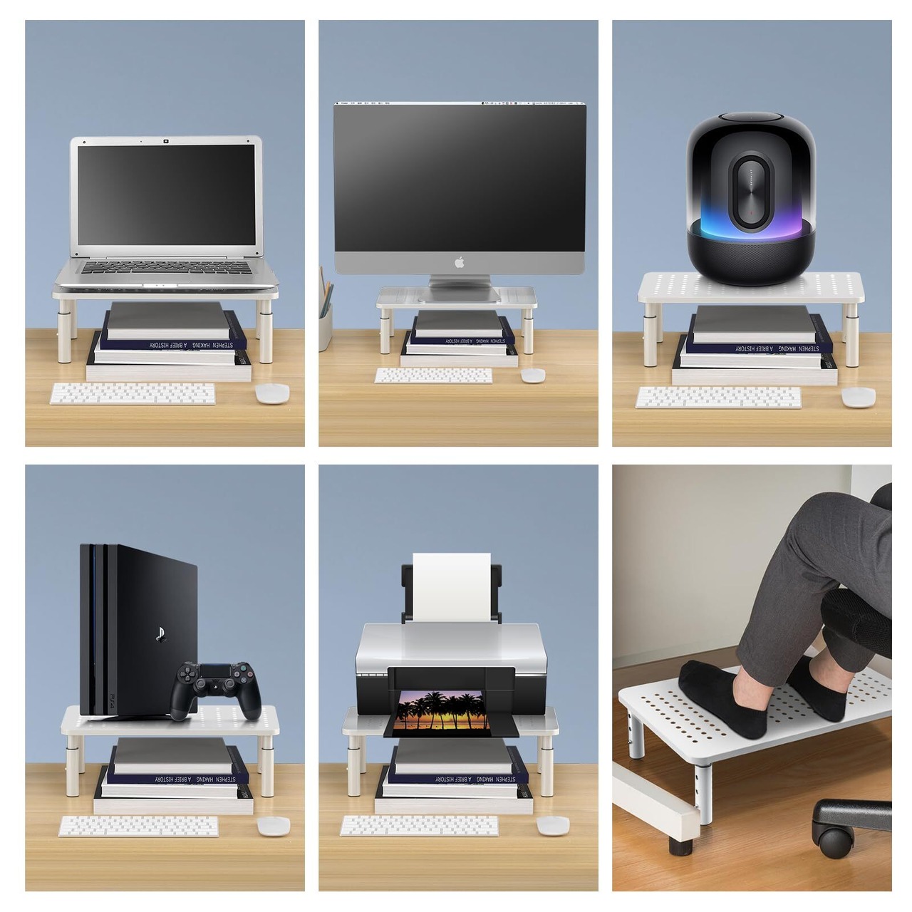 【多機能】モニター台にPCディスプレイを載せて、キーボードなどをモニター台の下に収納して、モニター周りのスペースをより多く活用することができます。多機能な机上台で、オフィスや研究室やリビングルームなどの場合もオススメです。