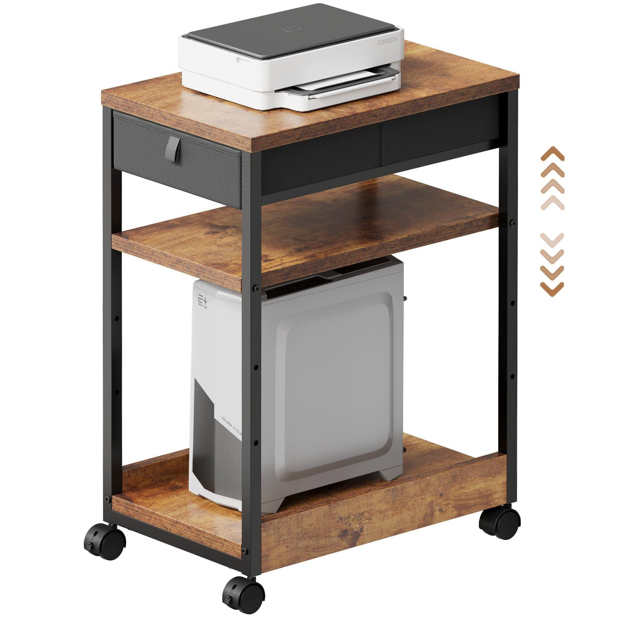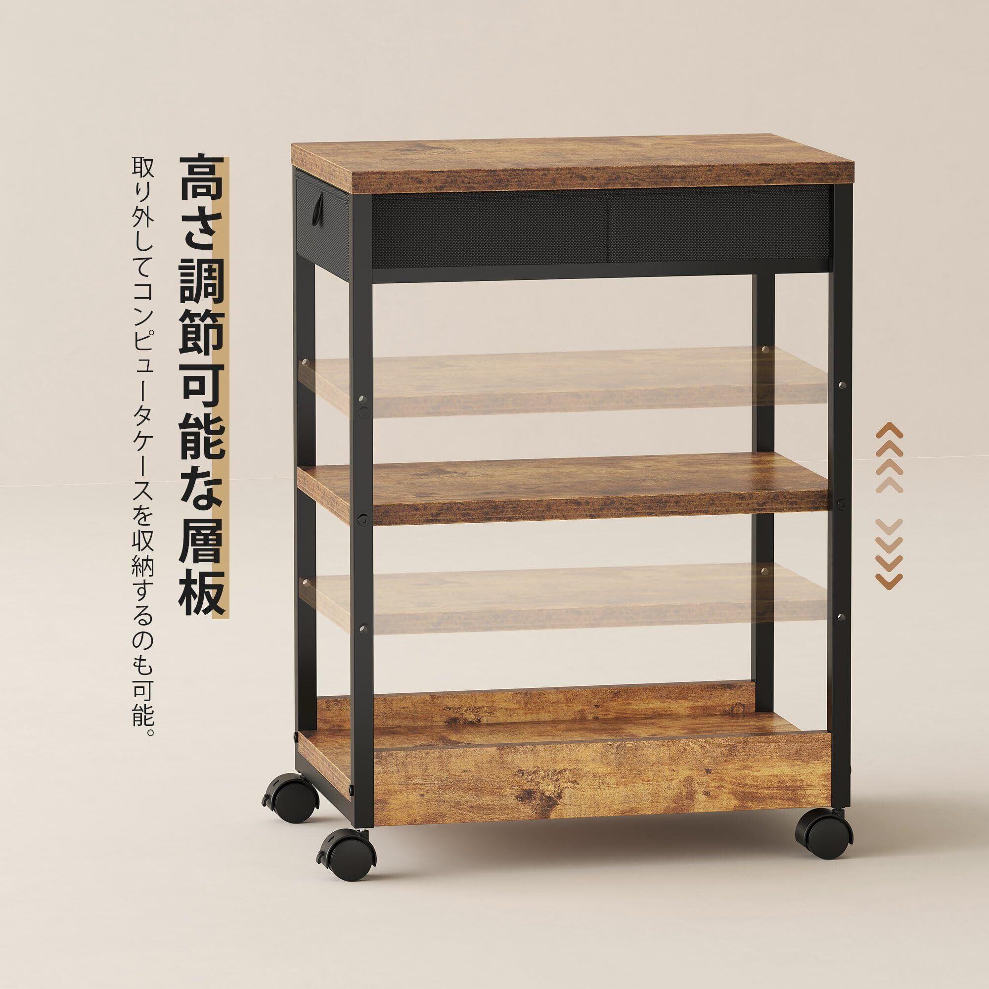 パソコンラック サイドワゴン 引き出し付き サイドテーブル pcラック キャスター付きワゴン pcワゴン 板は調節可能 プリンターラック 袖机 PC本体収納 袖机 幅300*奥行480*高さ680mm ゲームラック ビンテージ