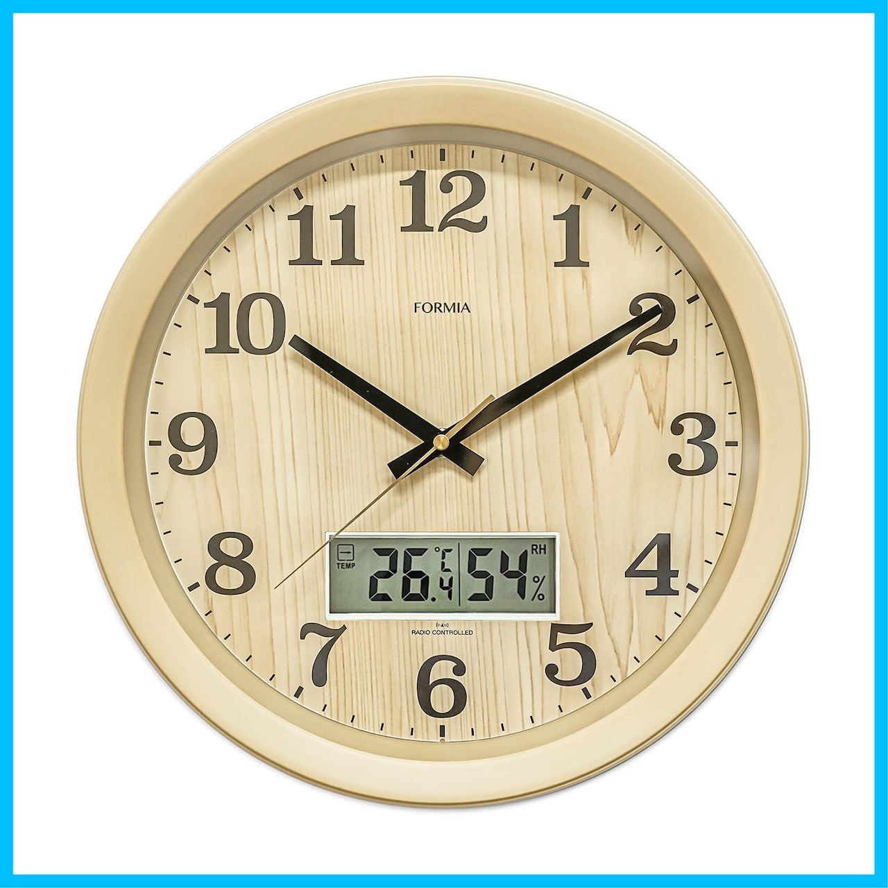 【数量限定】Formia(フォルミア) 電波時計 掛け時計 温度 湿度 夜間秒針停止 アナログ 保土ヶ谷電子販売 ナチュラル HWC-023RC-N
