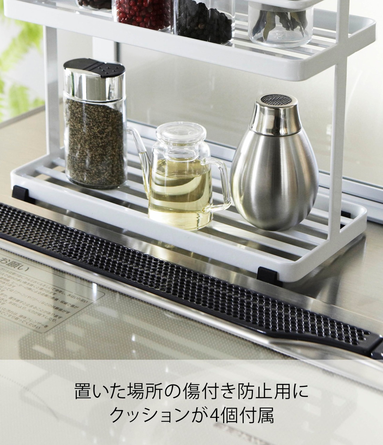 調理中に使用頻度の高い調味料などをまとめて収納できます。キッチン周りをスタイリッシュに演出するシンプルなデザイン。