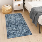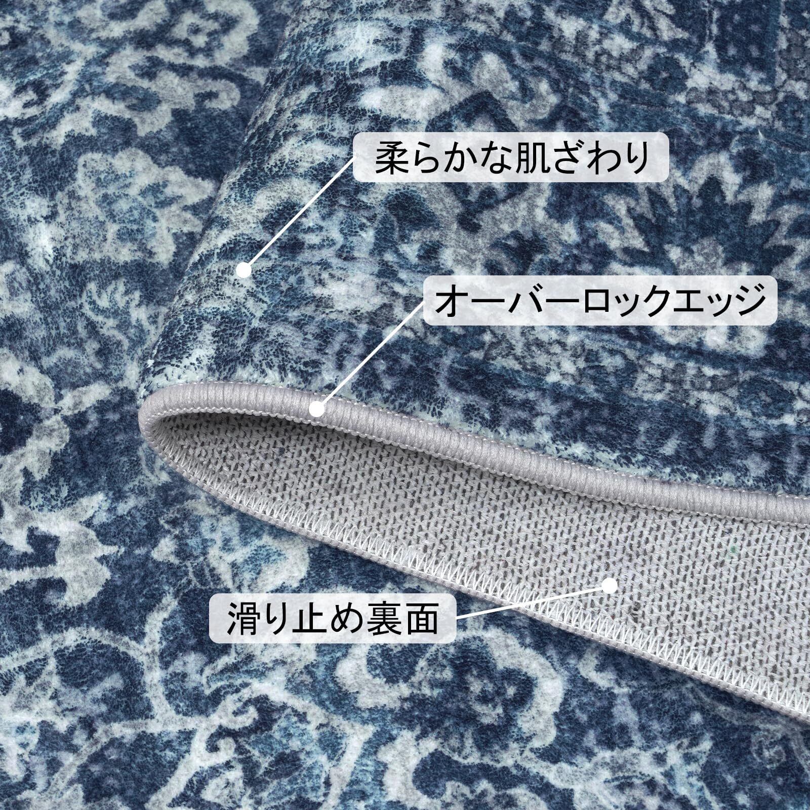 HAOCOO ラグ 洗える 90×150cm オールシーズン適用 ペルシャ風 ラグマット 1畳 ふわふわ おしゃれ 滑り止め ホットカーペット対応 防ダニ 防臭 軽量 防音マット リビング 寝室 チェアマット アンティーク 花柄 ブルー
