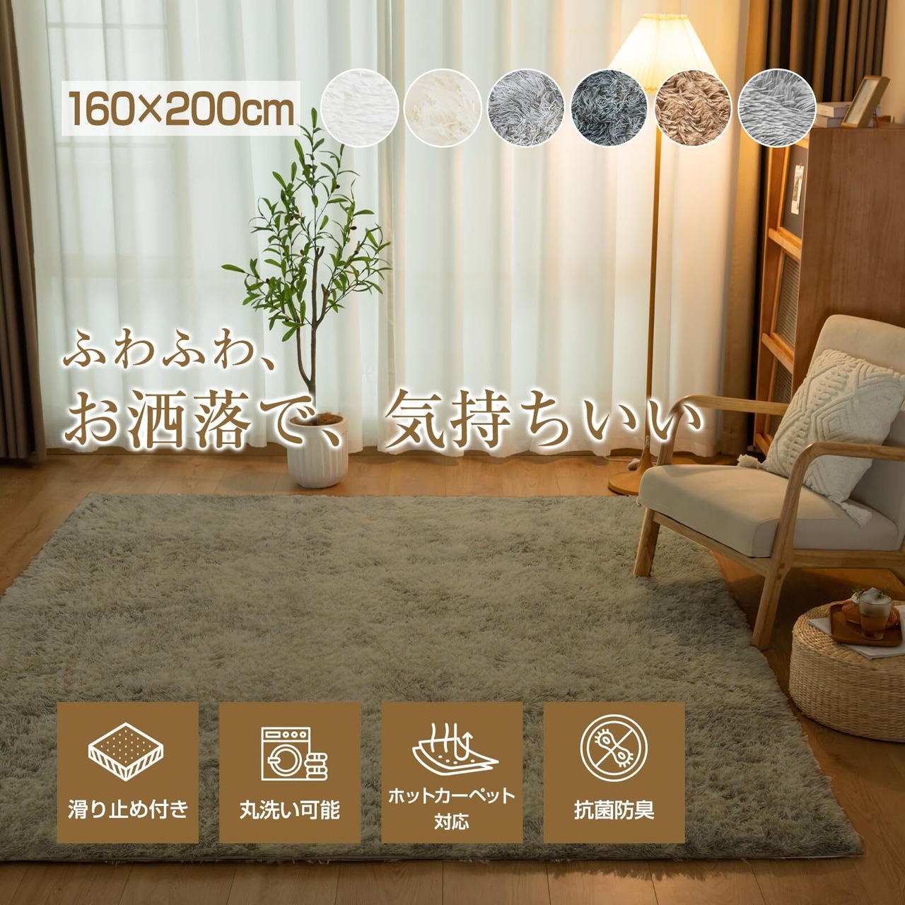 【在庫処分】カーペット ラグ ラグマット シャギーラグ 160×200cm 洗える 滑り止め付き オールシーズン 絨毯 地毯 抗菌 防臭 防ダニ ふわっと手触り リビングマット 床暖房 ホットカーペット対応 長方形 グレー