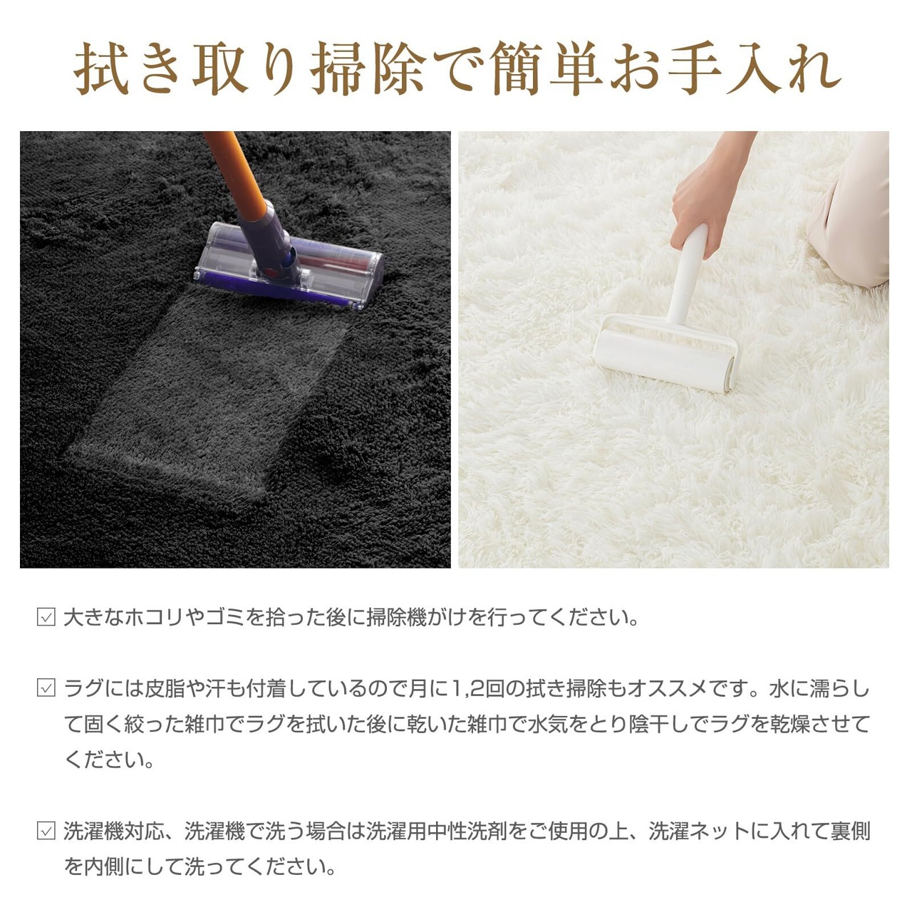 【お手入れ簡単】洗濯機で丸洗い可能です。軽量設計のラグマットなので、女性でも簡単に持ち運び可能。洗濯や取り替え、収納もラクラクです。※洗濯時には洗濯ネットをご使用ください。