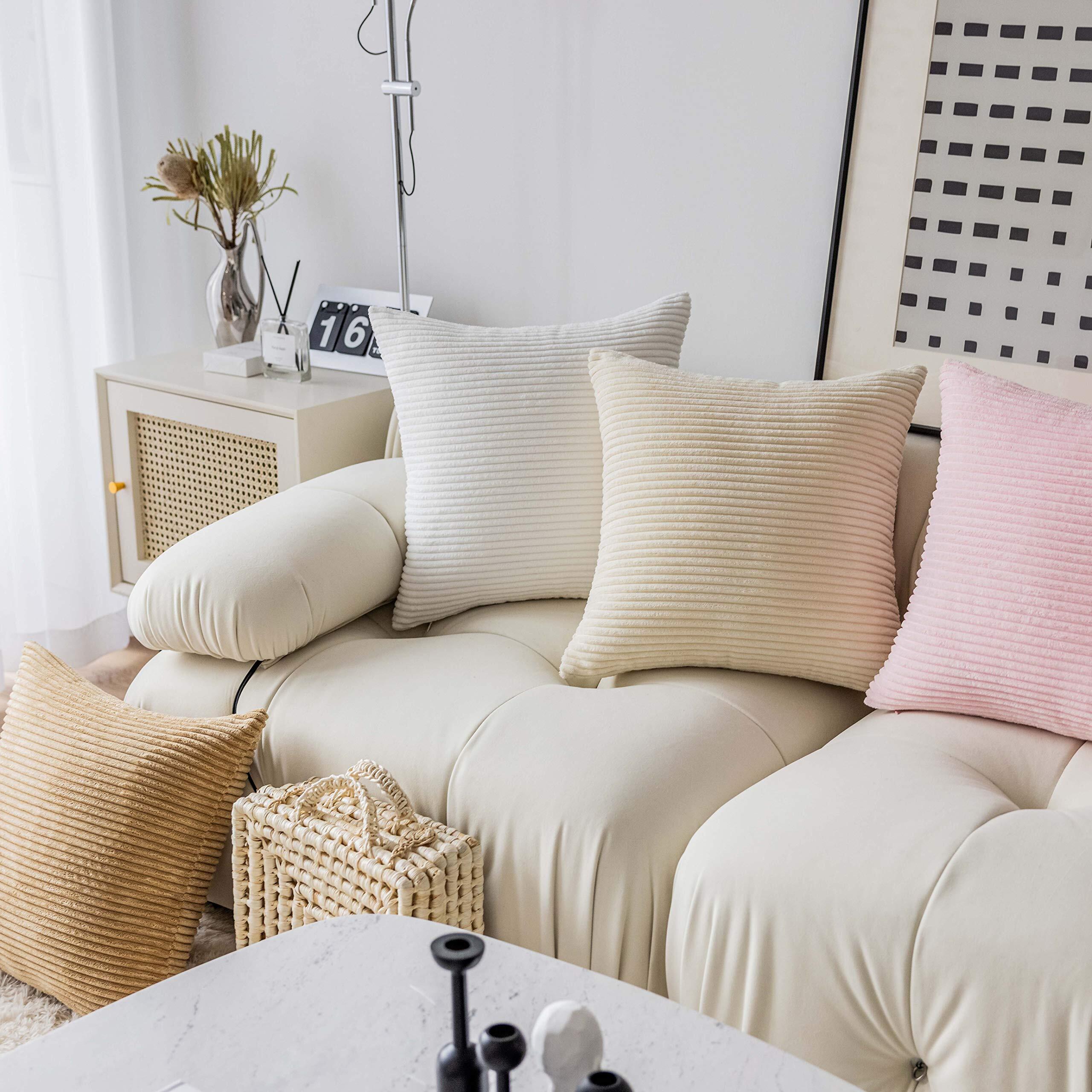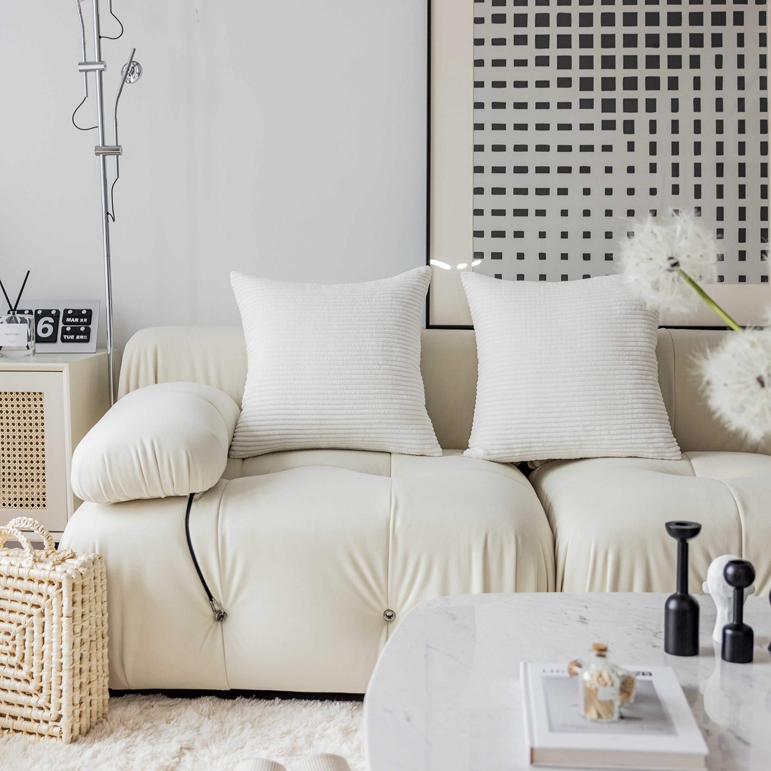 Demetex クッションカバー 45×45cm 1枚セット コーデュロイ ション おしゃれ 北欧 洗える ふわふわ 隠れるファスナー ストライプ ソファー用背当て 装飾枕カバー 白【カバーのみの販売】