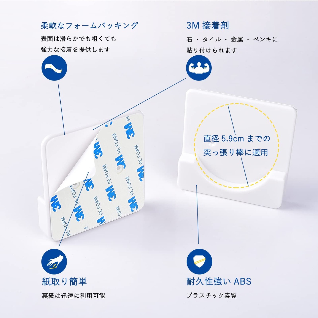 【仕様】サイズは8×8×1.4cm、半円形溝の直径は5.9cmで、直径は5.5cmまでにの突っ張り棒を支えられます、厚さは1.4cm、材質はABS、固定板×2、両面テープ×2、ステンレススクリュー×4、拡張ゴムプラグ×4