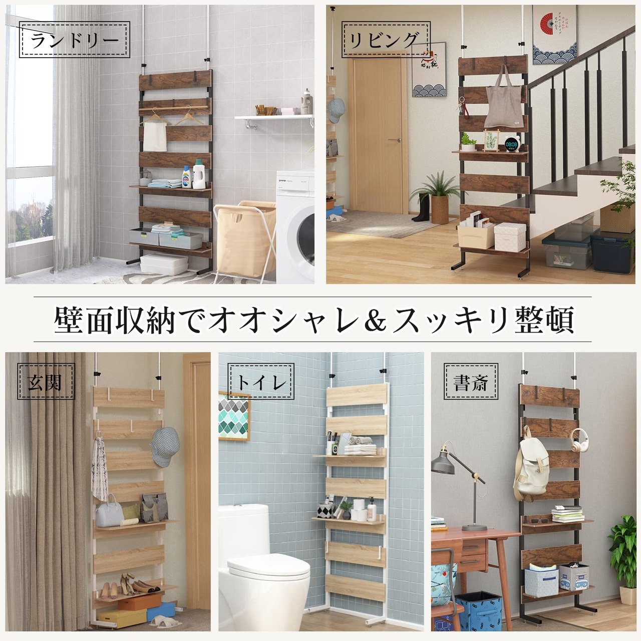 突っ張りラック 本棚 つっぱり ラック 壁面収納 ラック つっぱり棚 収納棚 大容量 棚 ウォールラック パーテーション スリム シェルフ 収納 壁面ラック 間仕切り 工具不要 簡単設置 組立品 段差対応 幅60/80cm (ブラウン,80CM本体)