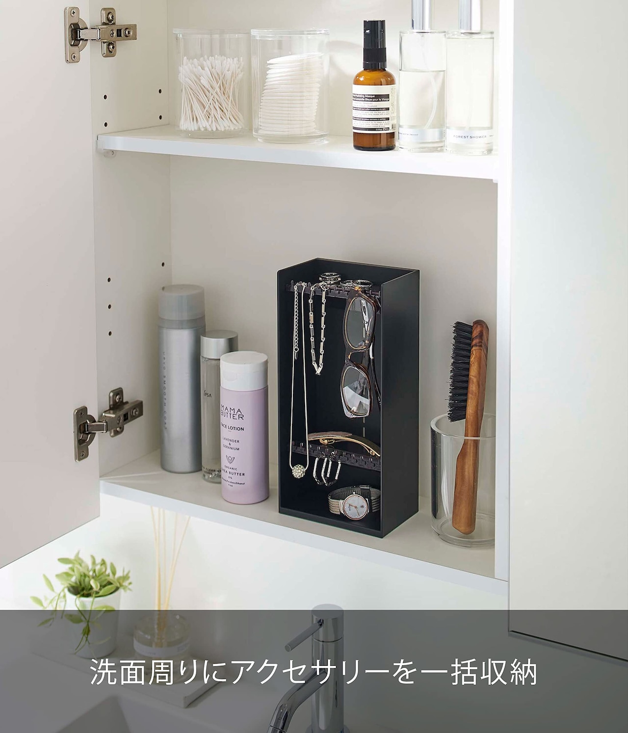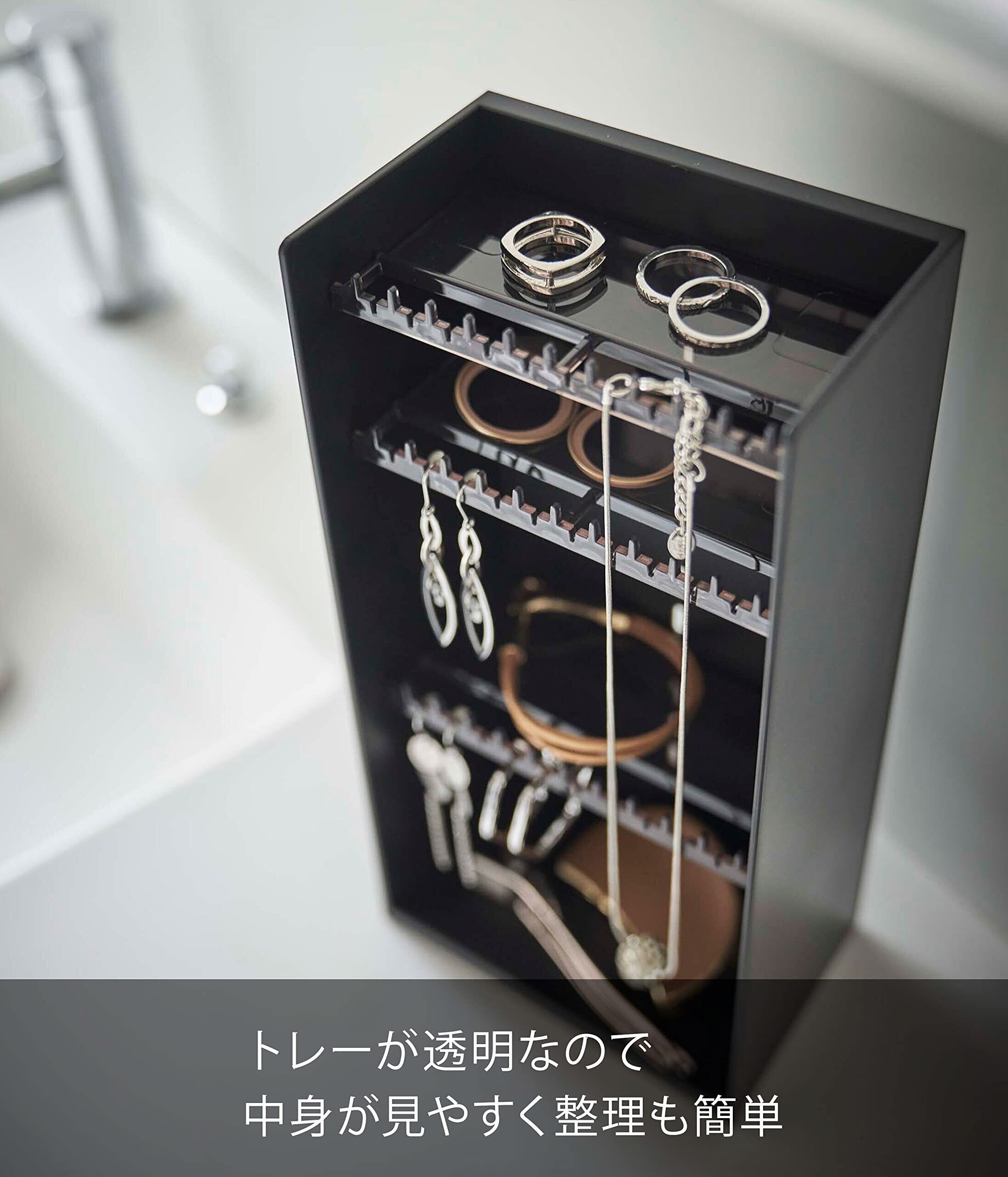 山崎実業(Yamazaki) アクセサリー収納 ケース 4段 ブラック 約W12×D7.7×H25㎝ タワー 大容量 小物収納 ジュエリーケース 5600