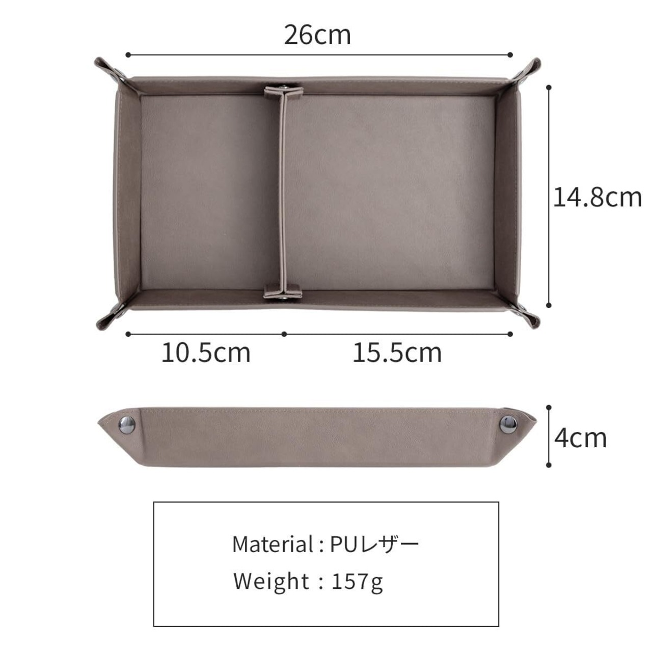 【サイズ】 ・内寸(組立時):幅245mm × 奥行135mm × 高さ40mm ・外寸(組立時):幅270mm × 奥行155mm × 高さ43mm ・重さ 157g 【素材】 PUレザー