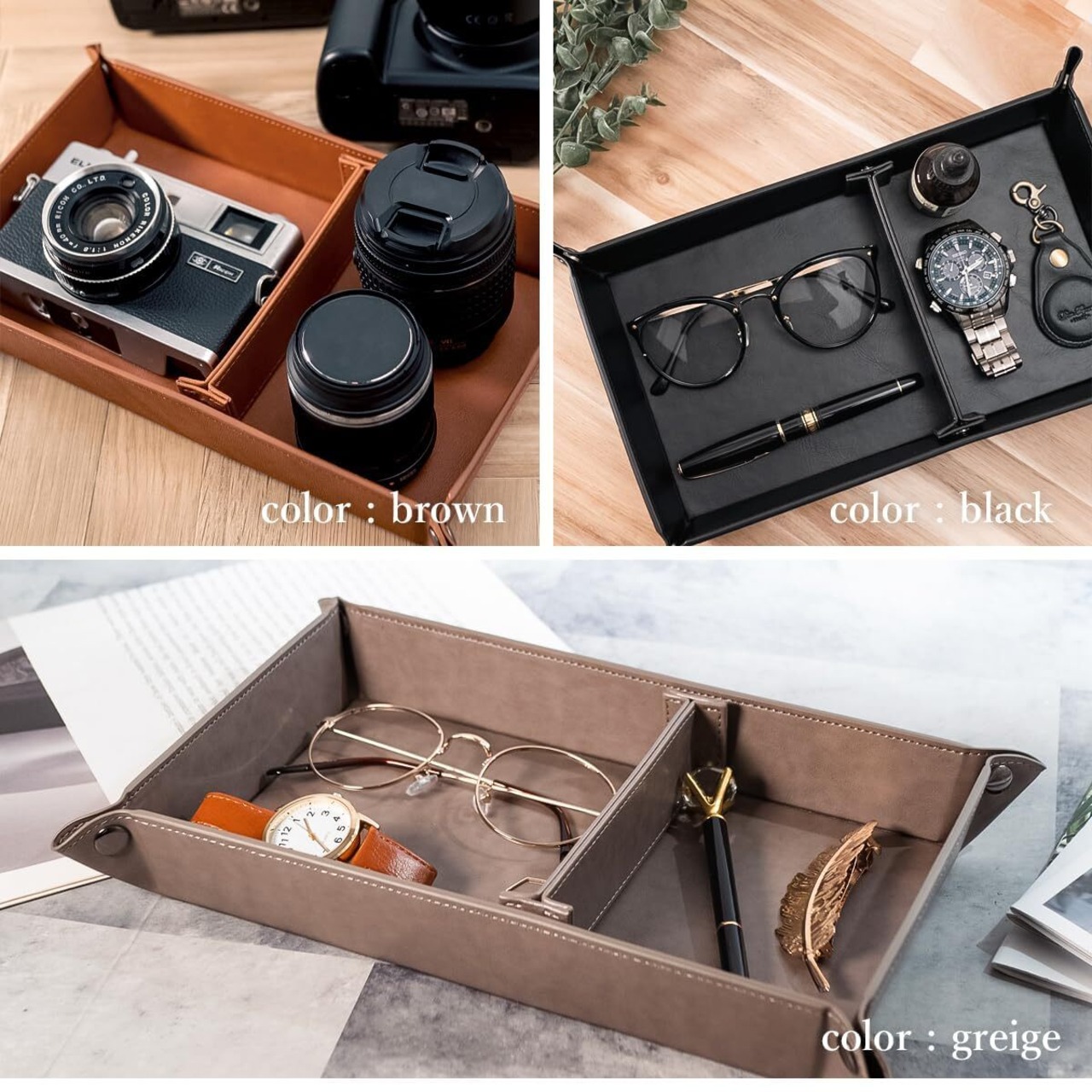 [HIGH FIVE] 長方形 レザートレイ 仕切り付き トレー オーガナイザー 小物入れ PUレザー アクセサリー ジュエリー 腕時計 指輪 車 スマホ 鍵 ダークブラウン