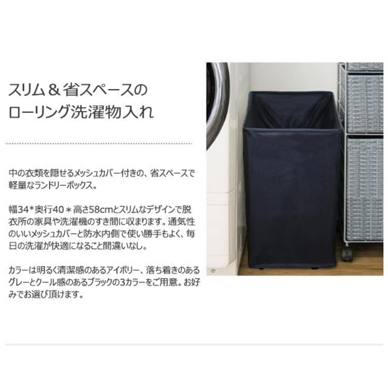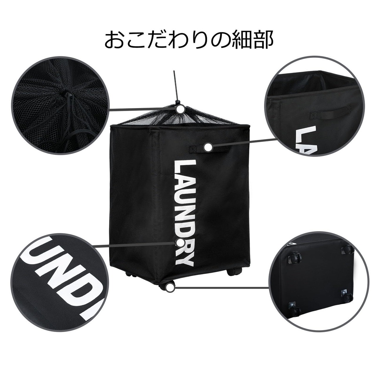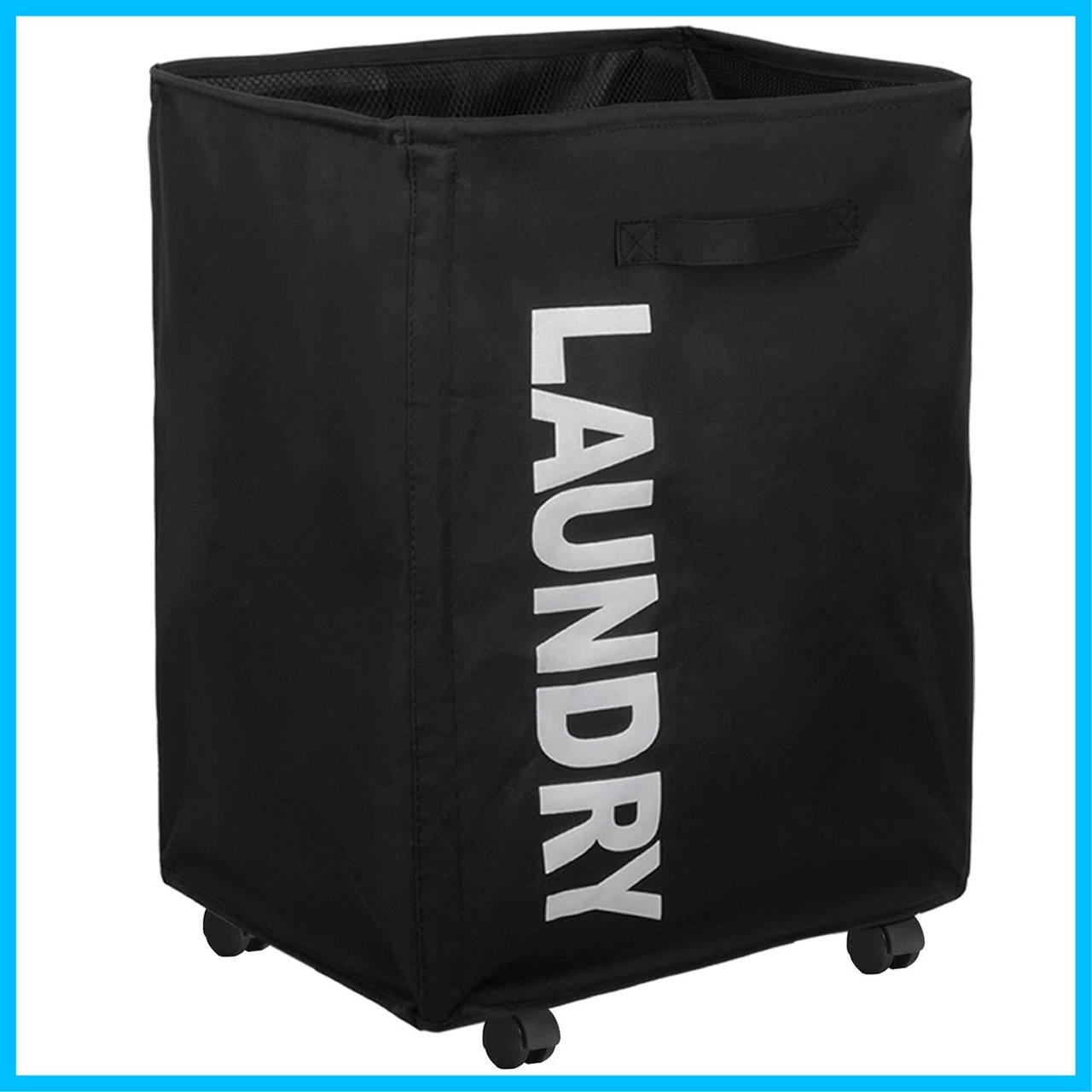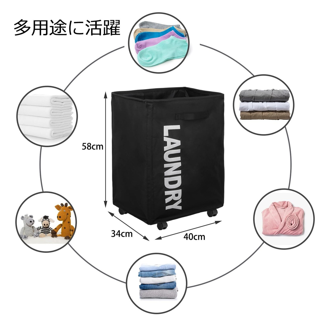 折りたたみランドリーバスケット ランドリーボックス 洗濯かご キャスター付き 75L大容量 幅34cm スリム 防水 持ち手 防塵メッシュカバー付 引っ越し祝い 新生活 入学式 ギフト (40*34*58cm ブラック)