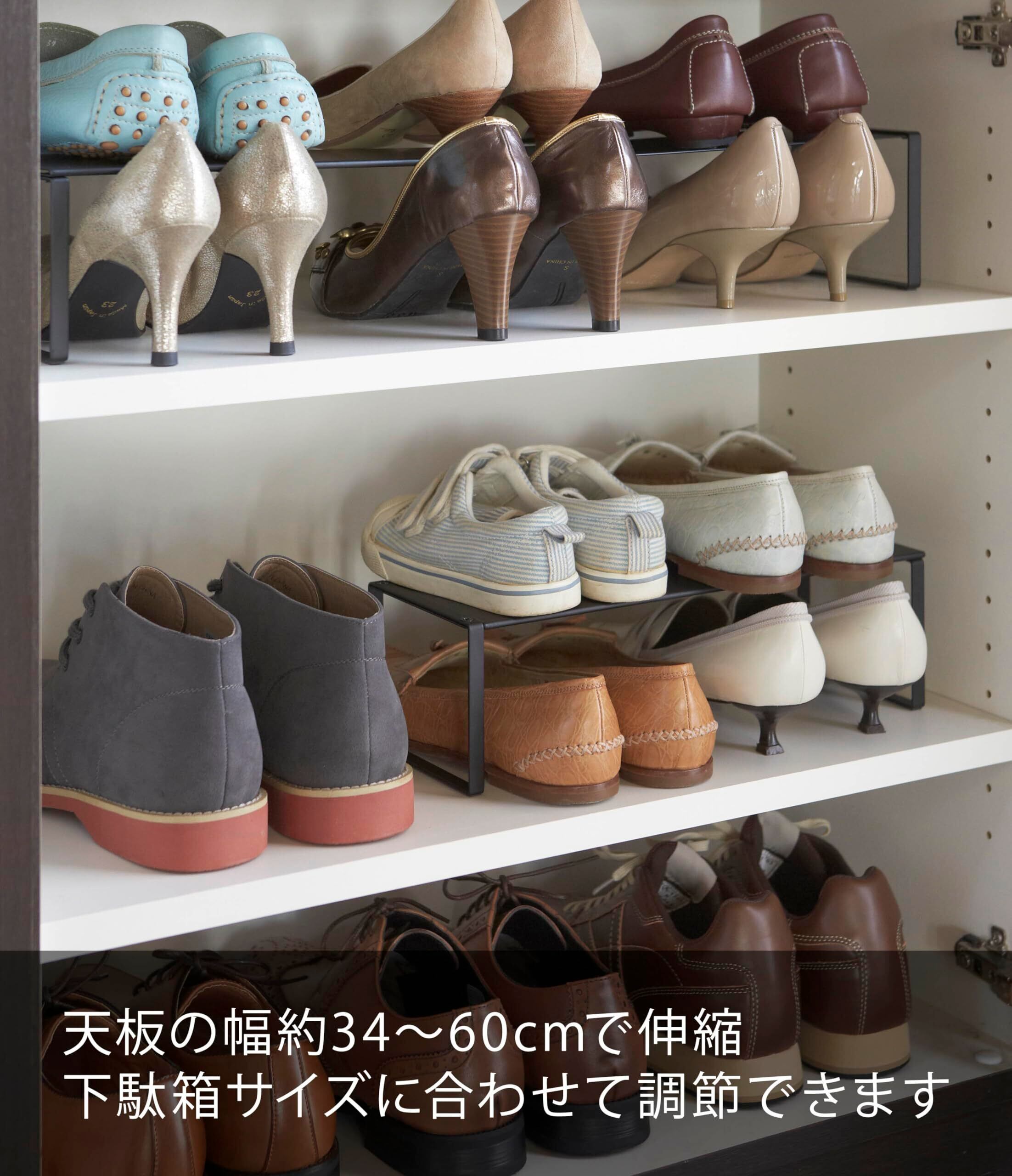 山崎実業(Yamazaki) 下駄箱中 伸縮シューズラック フレーム ブラック 2573
