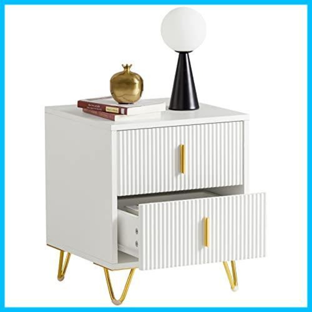【オシャレ北欧風】ゴールド部件と白いナイトテーブルを組み合わせってモダンな印象を与え、部屋に軽快でクールな雰囲気をもたらします。