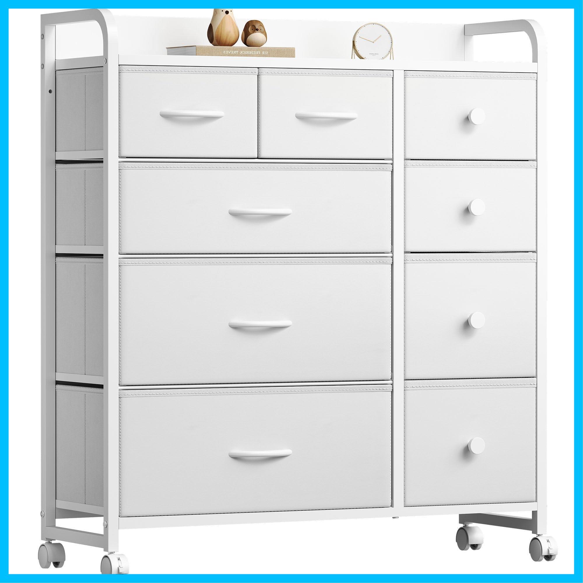 【人気商品】タンス 収納 チェスト 洋服収納 おしゃれ 洋服タンス キャスター付き 大容量 衣装棚 衣裝ケース リビング 引き出し 脱衣所 棚 衣類チェスト 箪笥 木製天板付き 和風 布製引き出し 転倒防止 安定感 L83×W29×H96cm(4段9杯 白い)