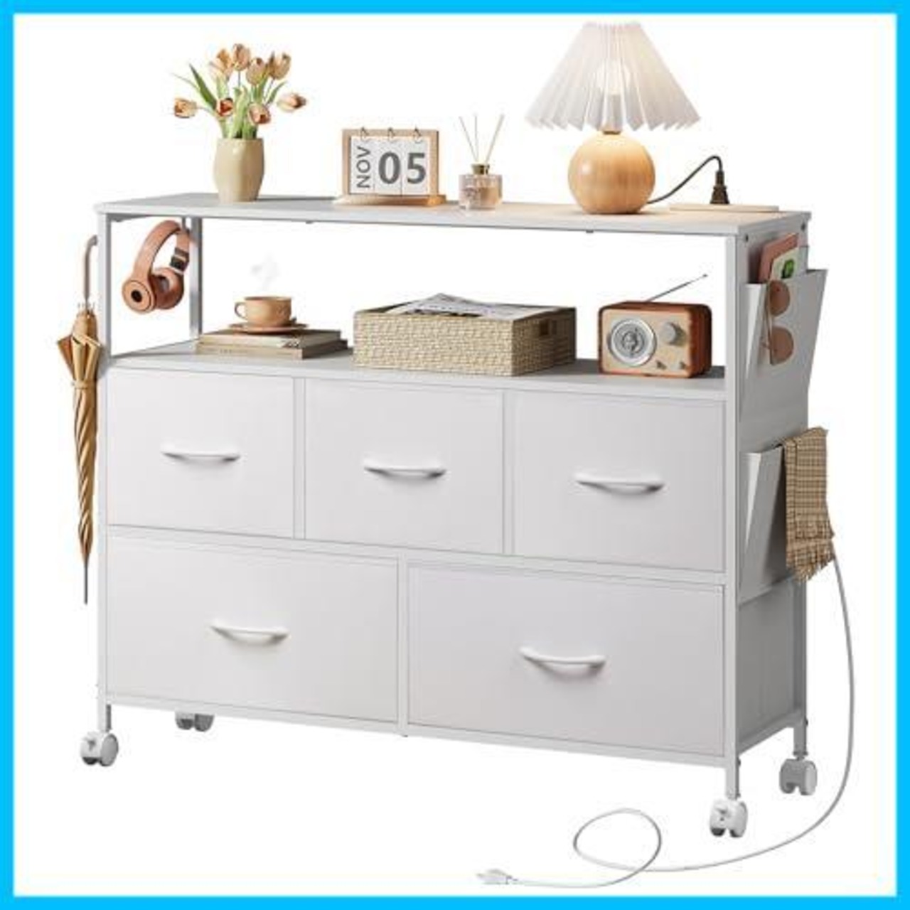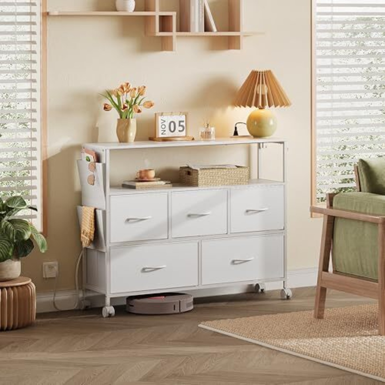【新着商品】チェスト タンス 2段棚付き収納 コンセント付き USBボード キャスター付き サイドポケット付き 2段5杯 箪笥 ローチェスト リビング収納 おしゃれ 収納チェスト 布製 引き出し 大容量 洋服タンス 衣類収納 北欧 シンプル ホワイト ASNG608
