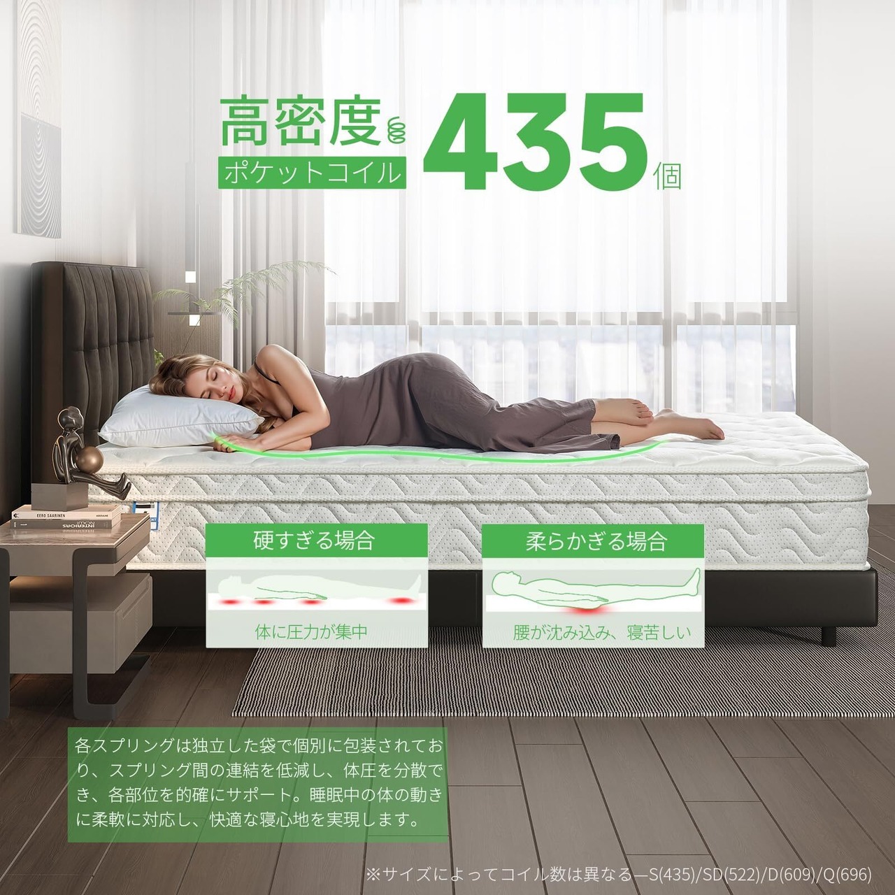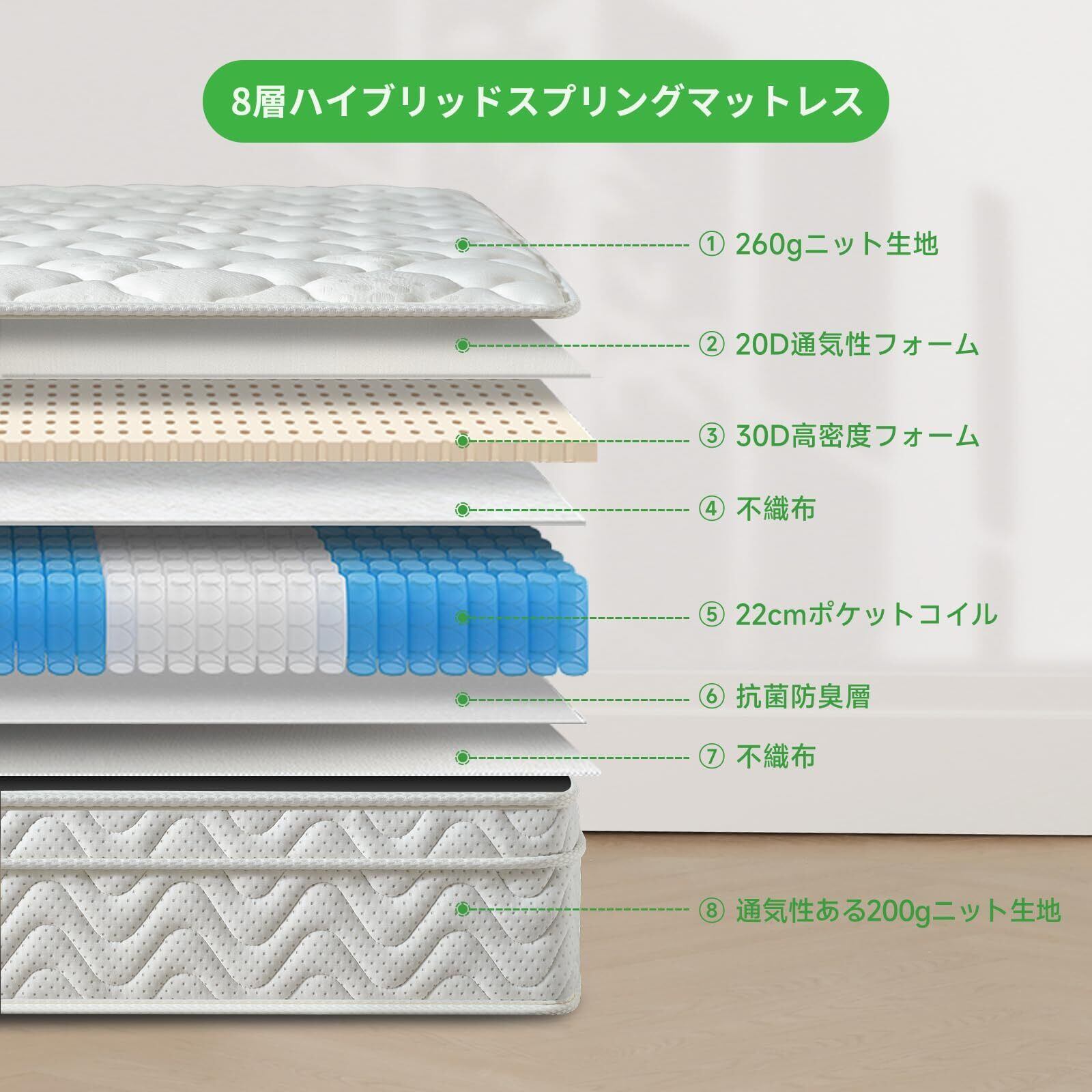 「️1. 多層構造と高品質素材で究極の睡眠体験を提供」本製品は高さ22cm+コイル線径2.0mmの高品質ポケットコイル、高反発フォームなどの高品質素材を多層構造で組み合わせています。体のラインに優しくフィットしながらもしっかりと支え、背骨の自然な姿勢を維持します。独立ポケットコイルと人間工学デザインにより、体圧を均等に分散させ、寝返りの振動を最小限に抑えます。26cmの厚さが雲の上にいるようなリラックス感をもたらし、一人でも家族でも快適な睡眠を楽しむことができます。