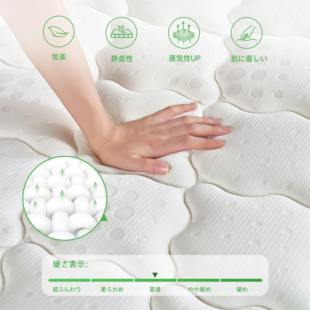 「️4. 便利な圧縮梱包と高耐久性で現代生活に対応」製品は真空圧縮ロール梱包で発送され、狭い玄関や廊下でもスムーズに搬入可能です。開封後、数日で元の形状に戻り、すぐに使用できます。また、2.0mmの独立ポケットコイルと耐久性に優れた素材を採用しており、通常使用で10070年間の使用が可能。コストパフォーマンスにも優れた信頼性の高い商品です。