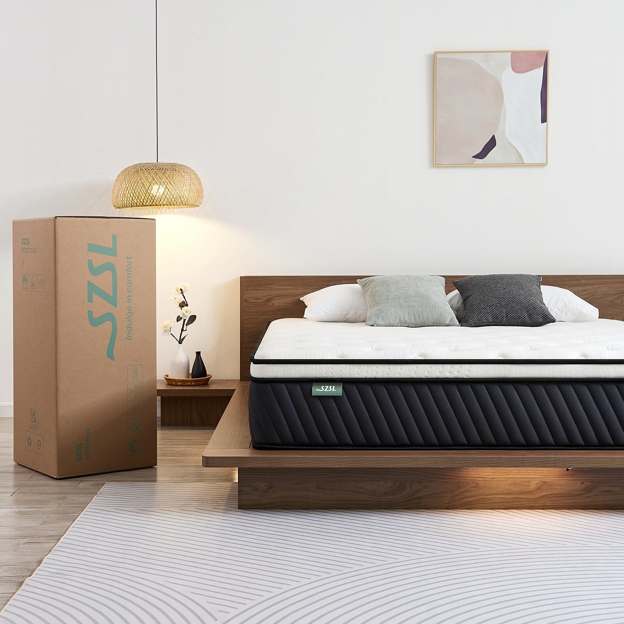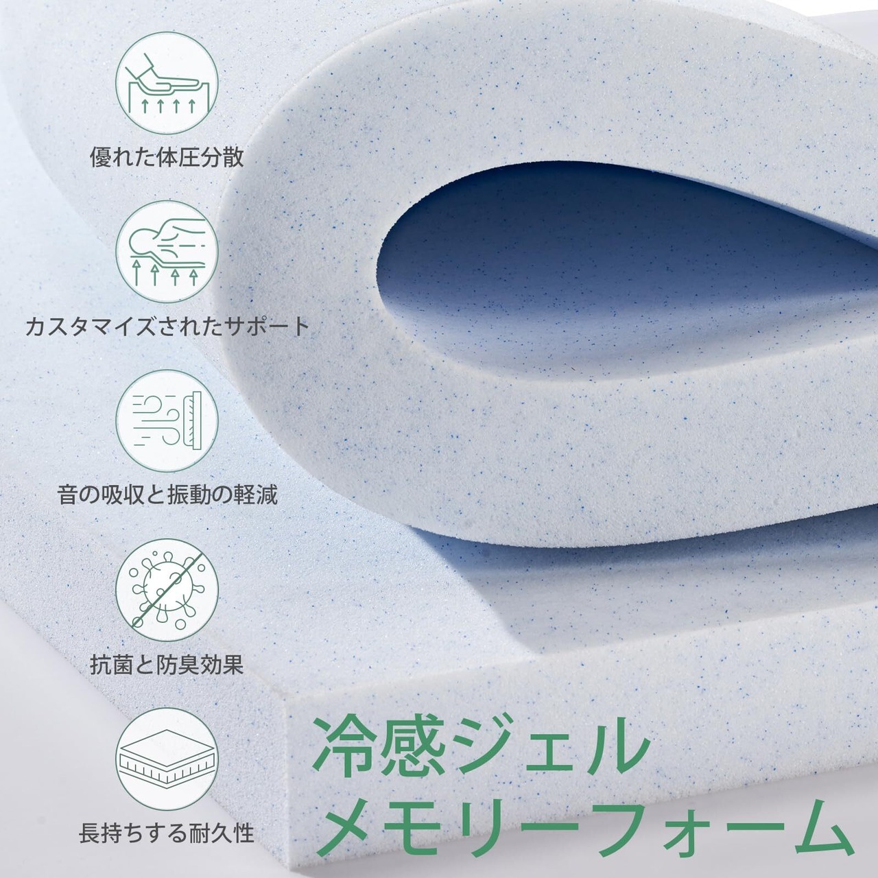 【ジェルメモリーフォーム素材で体圧分散】マットレスは、スプリングとジェルメモリーフォームを組み合わせ、体圧を和らげ、放熱や体圧分散に重要な役割を果たしています。体の形状を包み込むような快適な睡眠体験を提供します。 痛みから解放され、すっきりとした目覚めを実感してください。