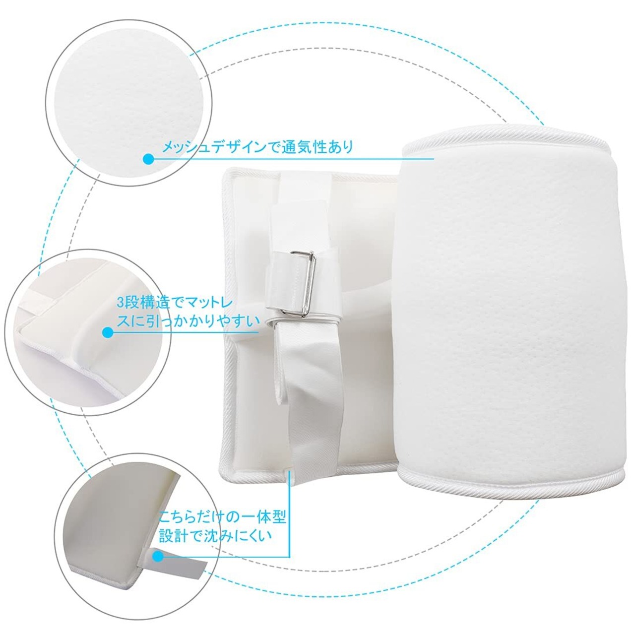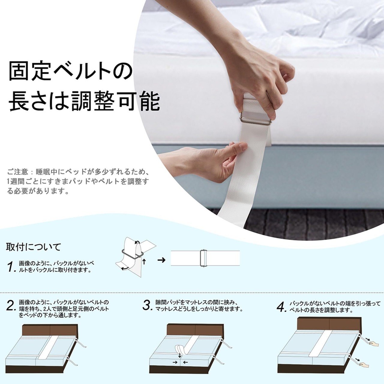 【一体型設計でずれにくい】すきまパッド ベッド 隙間埋め 連結ベルト マットレス用 固定ベルト マットレスバンド すきまスペーサー 連結 隙間 マットレスベルト ズレ防止 195*20*7cm 日本語取扱説明書付き ホワイト