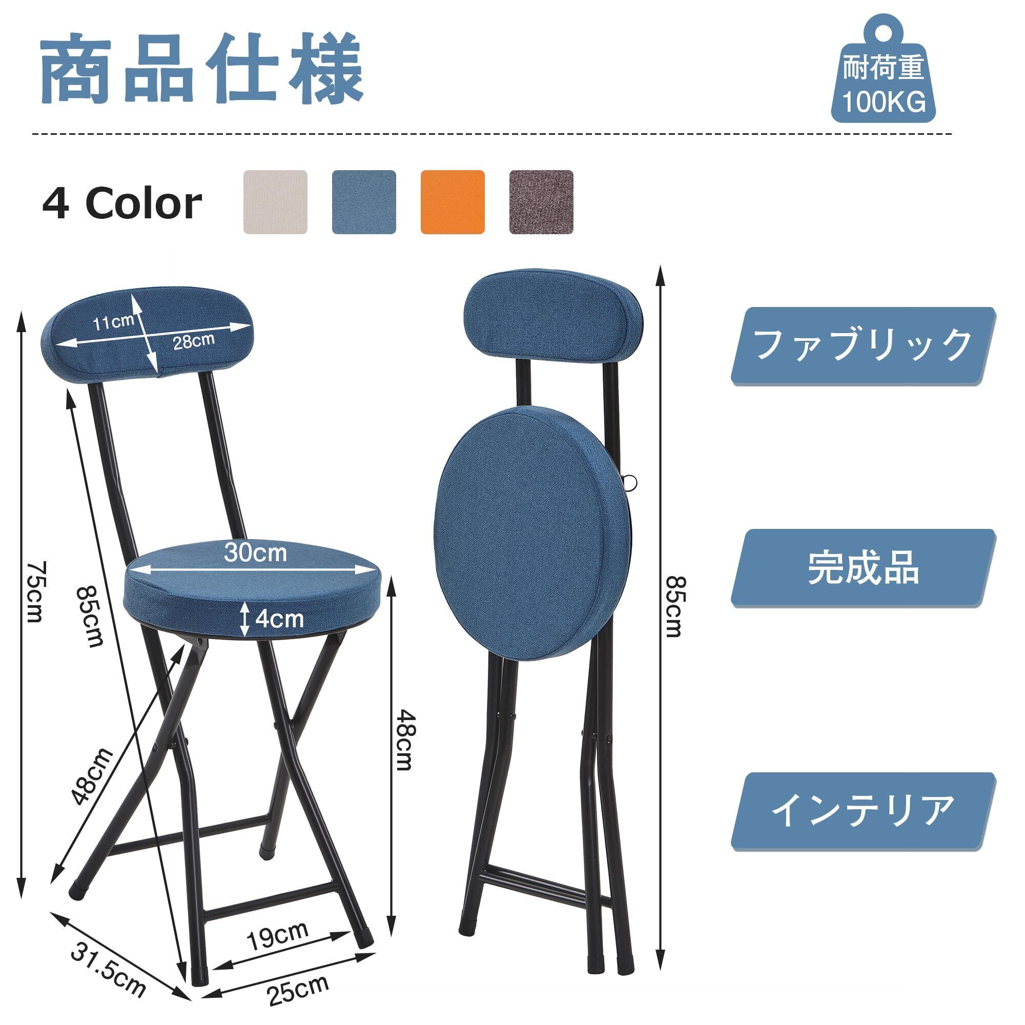 【サイズ】幅32×奥行き25×高さ74cm;座面高約48cm;折り畳み状態の高さ84.5cm 【材質】張地/ファブリック;クッション材/ウレタンフォーム;フレーム/スチール(粉体塗装) 【本体重量】1.98kg 【耐荷重】100kg