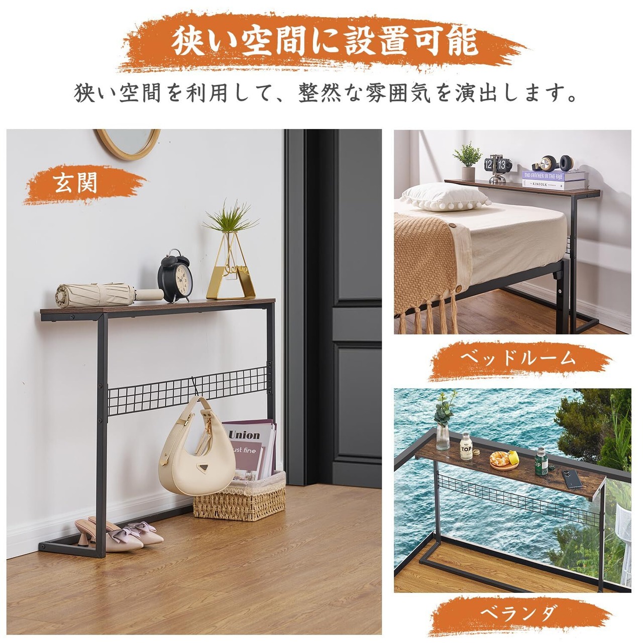 【在庫セール】VECELO コンソールテーブル スリム 玄関テーブル 幅100X奥行20x高さ80cm 細長い L型構造 フック付き 飾り棚 組立簡単 安定性 省スペース 木目調 頑丈 ハイカウンターテーブル シンプル 玄関収納 ダイニング 小物 鍵 廊下 ソファー裏 リビング 玄関 スリムテーブル 金属フレーム 細長いテーブル