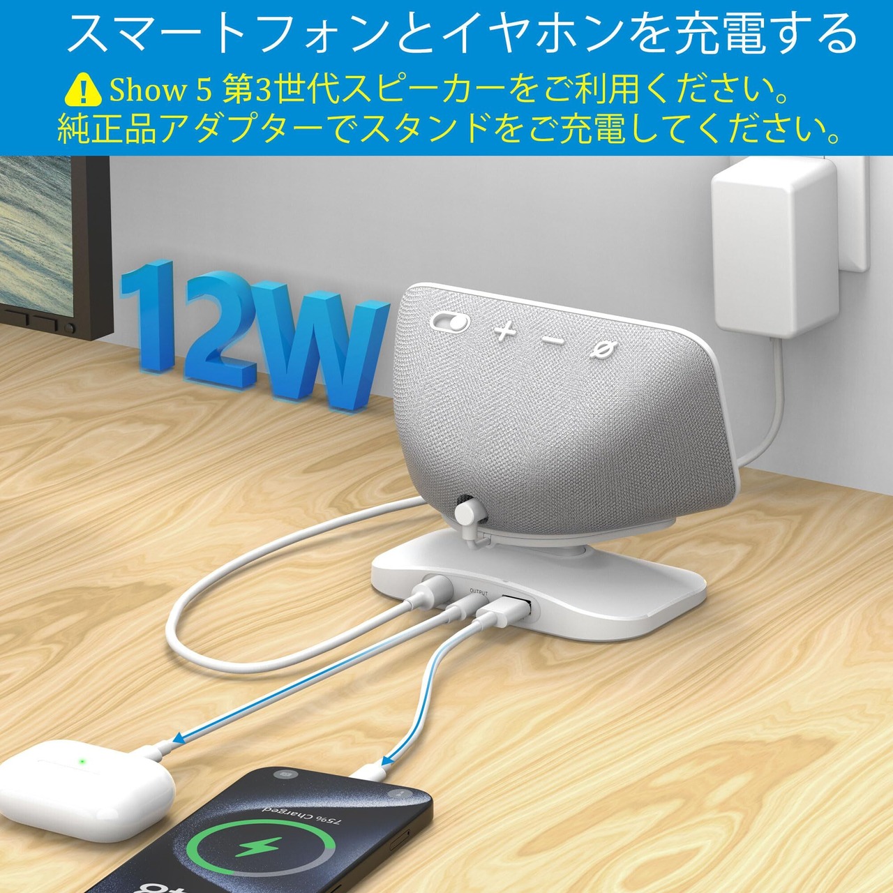 SPORTLINK Show 5 第3世代 充電スタンド Show 5 第3世代 ホルダー ショー 5 第三世代 スタンドiPhone やAirpods 充電スタンド Show 5 第三世代 充電用 USB-A/タイプ C充電ポート付きスタンド ショー 5 角度調節スタンド 安定性が高い 空間節約 音質向上(ホウイト)
