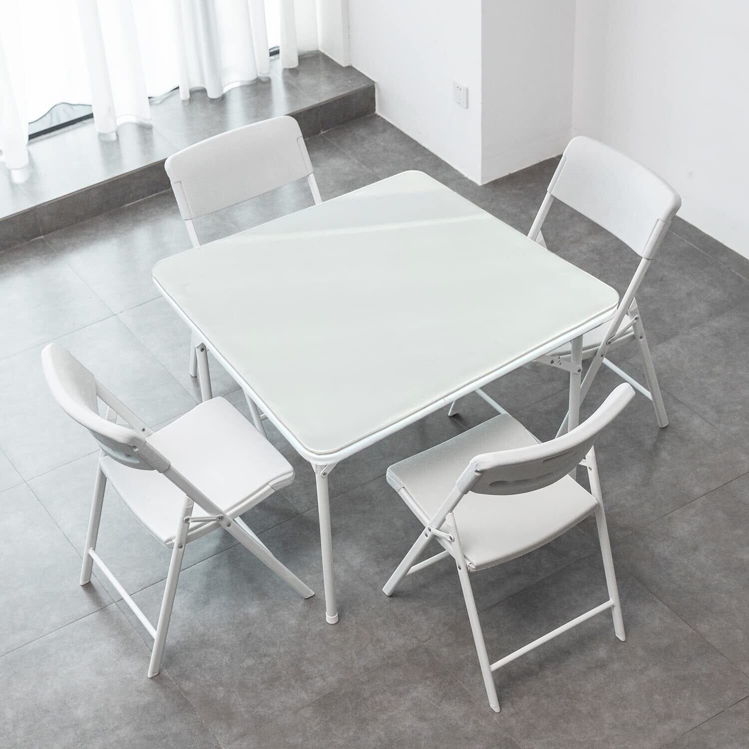 KAIHAOWIN 折りたたみテーブル ダイニングテーブル 正方形 4人用 麻雀テーブル 安定 耐久 防水 防汚 省スペース 組み立て不要 室内 キャンプ アウトドア ゲーム用 (85×85 cm,ホワイト)