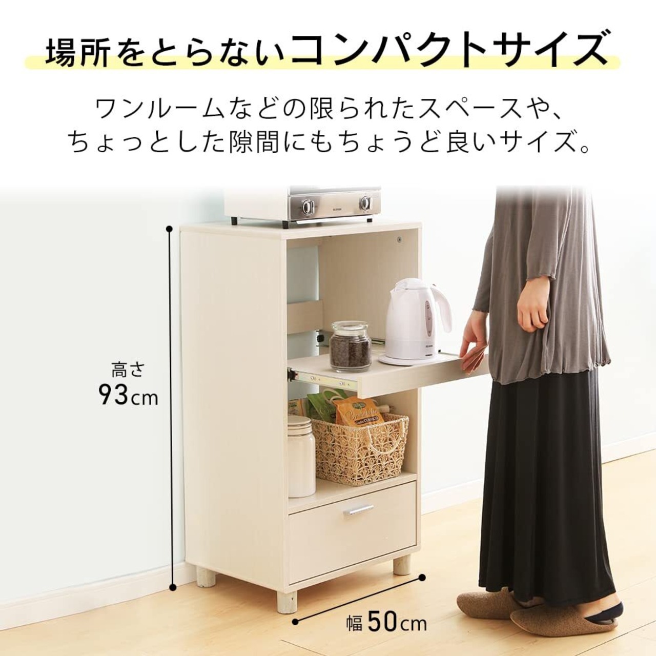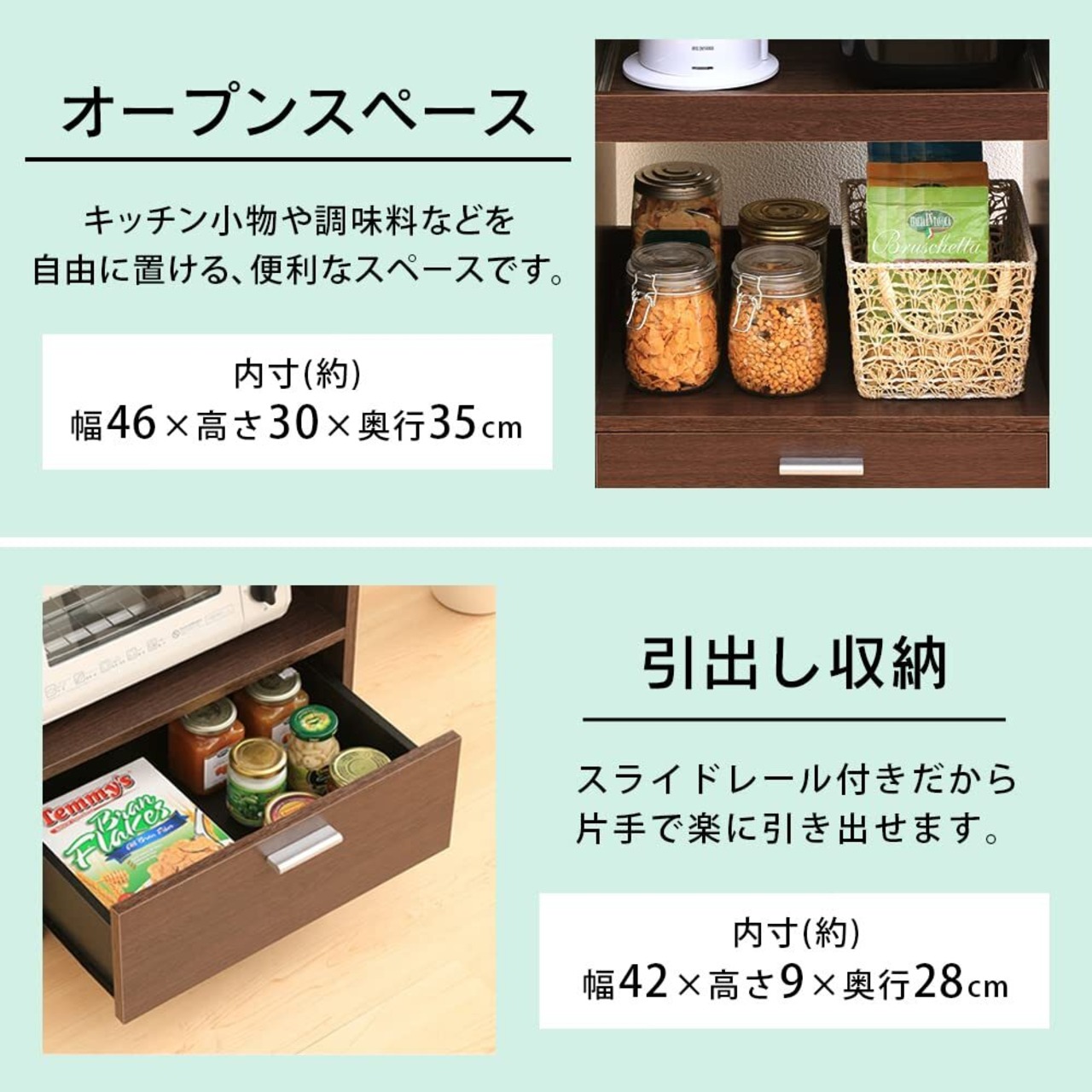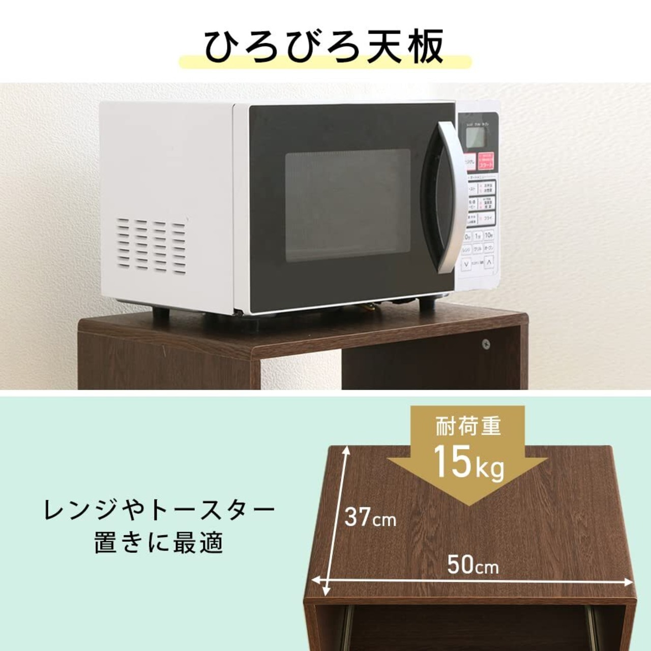 アイリスオーヤマ キッチンボード レンジ台 スライド棚 幅50×奥行37×高さ93.8cm ブラウンオーク KBD-500