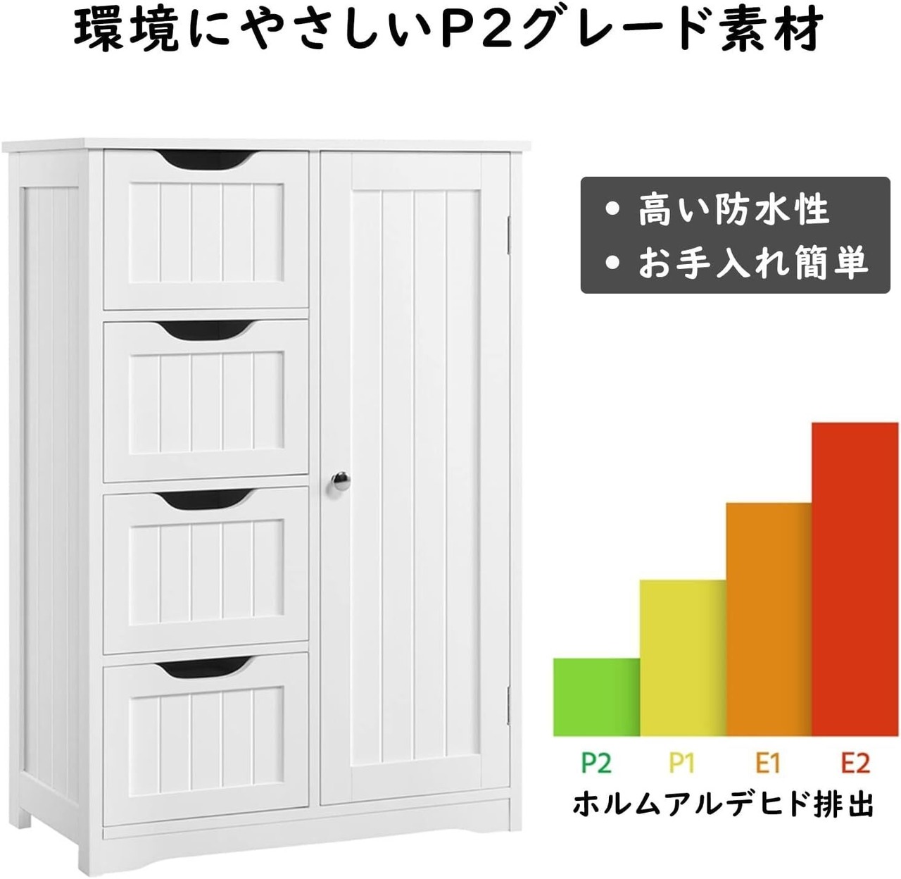 【厳選された素材】:このキャビネットは、長期間使用しても安全で高い耐久性のある無害なP2準拠MDFボードが使用され、湿気に耐え、湿気を防ぐことができます。