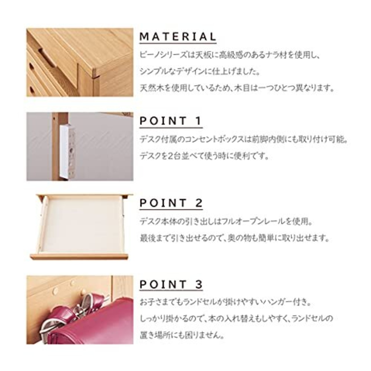 コンセントボックス、大型ハンガー、カバンフック、引き出し鍵付き