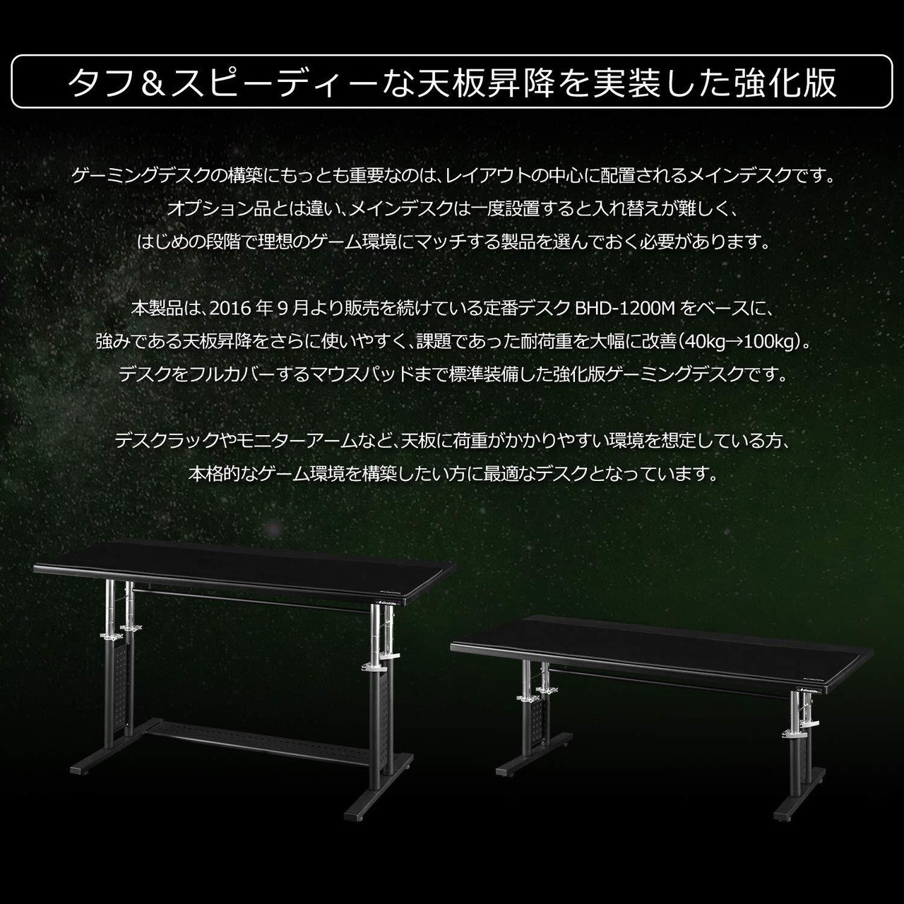 昇降式ゲーミングデスクシリーズの通常モデル(BHD-1200/1000M)と比べ、よりスピーディーな昇降が可能になりました。