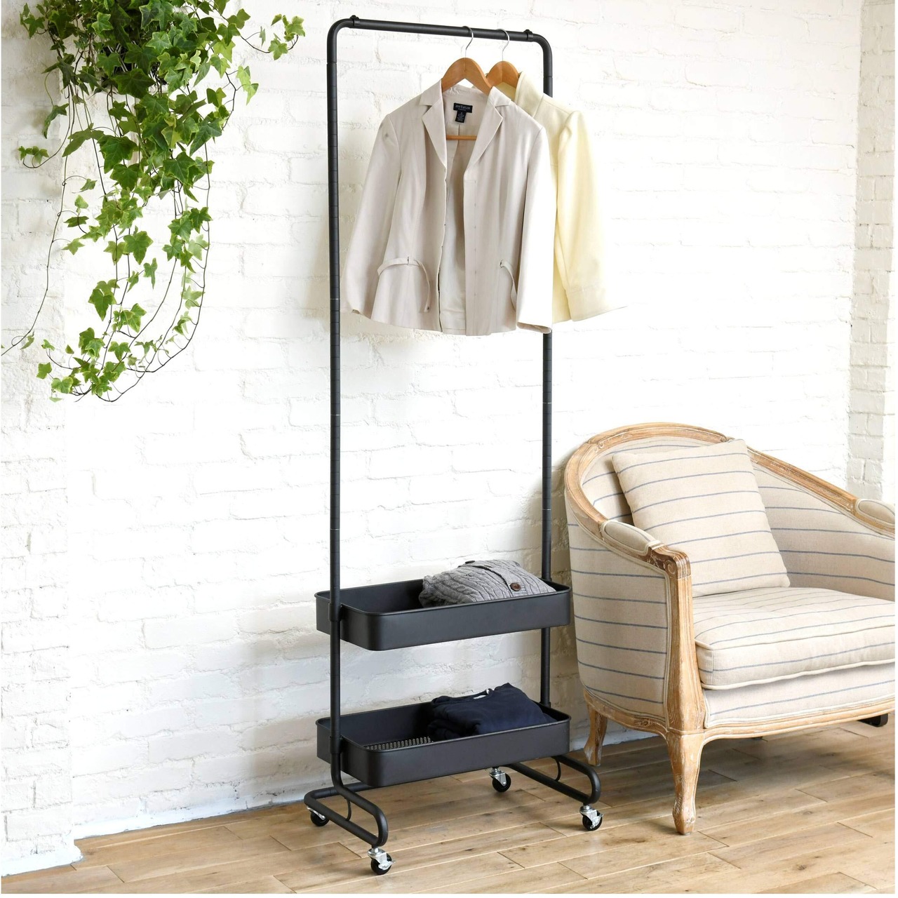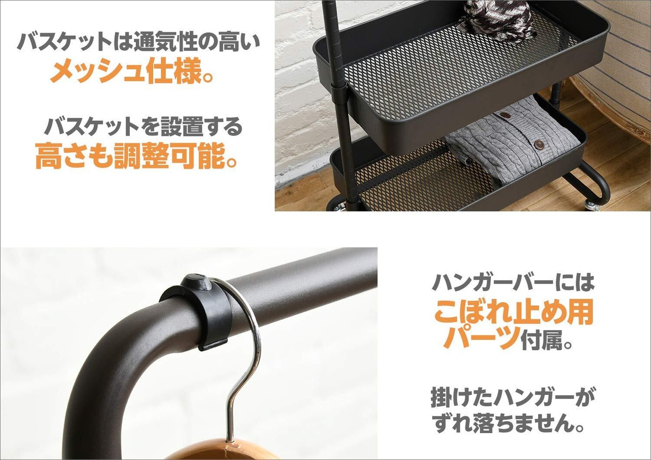 【数量限定】山善(YAMAZEN) トローリーハンガー ブラック バスケット2段 バスケット2段仕様 LTH-2B(BK)