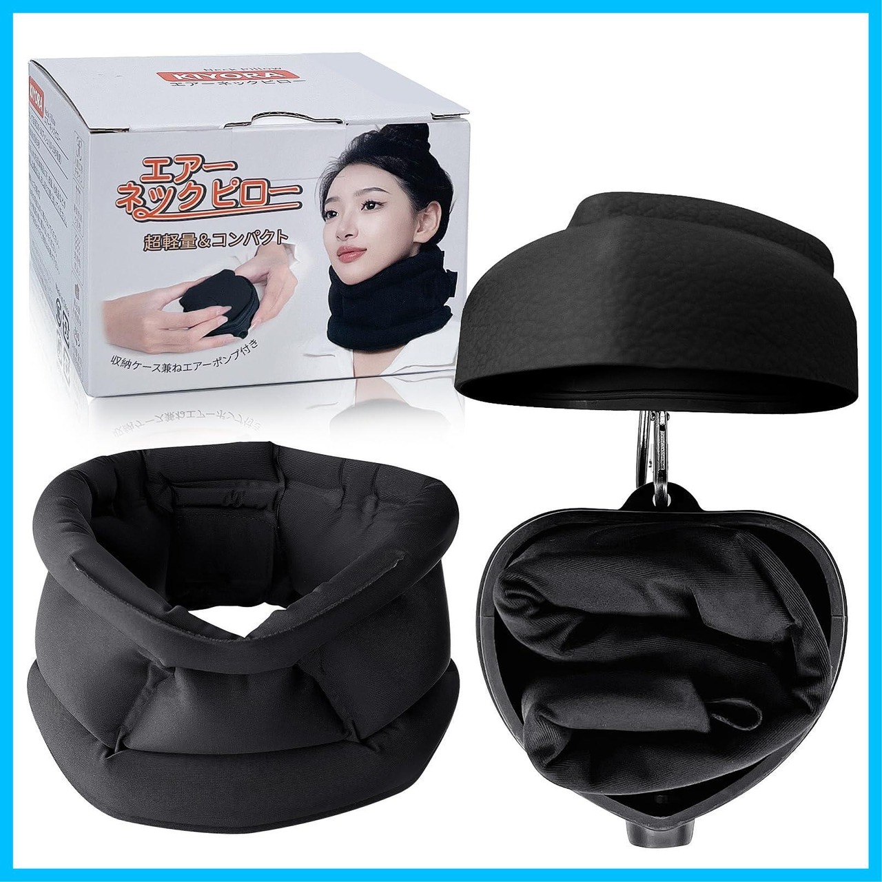 ネックピロー エアー 首枕 飛行機 トラベルピロー エアーネックピロー 空気 KIYORA 携帯枕 ネックピロー コンパクト 夜行バス 快適グッズ 首の痛み ネックサポート 旅行 便利グッズ 超軽量 機内 車 新幹線 夜行バス オフィス 自宅 快眠 エアーポンプ 収納ケース付き (ブラック)