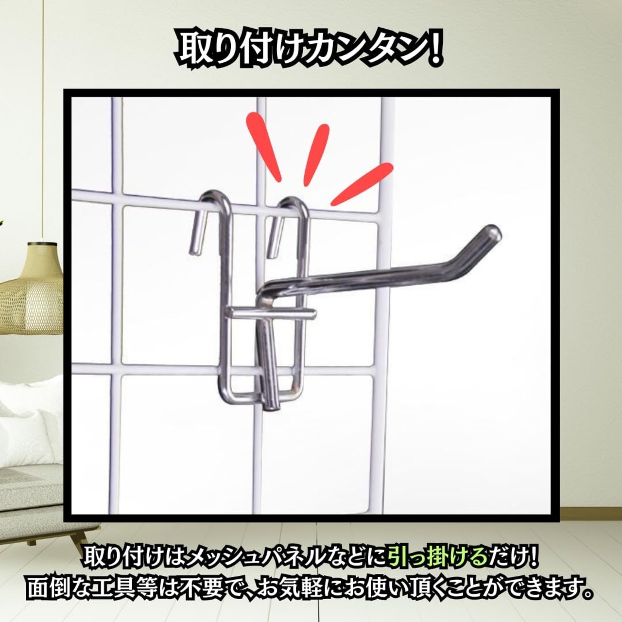 【取り付け簡単】取り付けはメッシュパネルやスチールラックなどに引っ掛けるだけ!面倒な工具等を使わず、お好きな場所に即設置できて移動も簡単です。今まで余らせていた空間が収納スペースに早変わり!