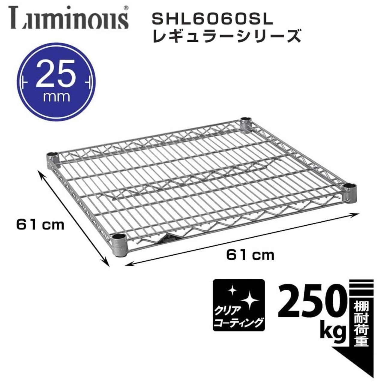 【特価セール】ドウシシャ ルミナスレギュラー スチールラックパーツ スチール棚板 幅61×奥行61cm SHL6060SL スリーブ4個付き 耐荷重250kg 頑丈 業務用 スチールシェルフ 追加棚板 天板 防錆加工 ポール径25mm 幅60 奥行60モデル