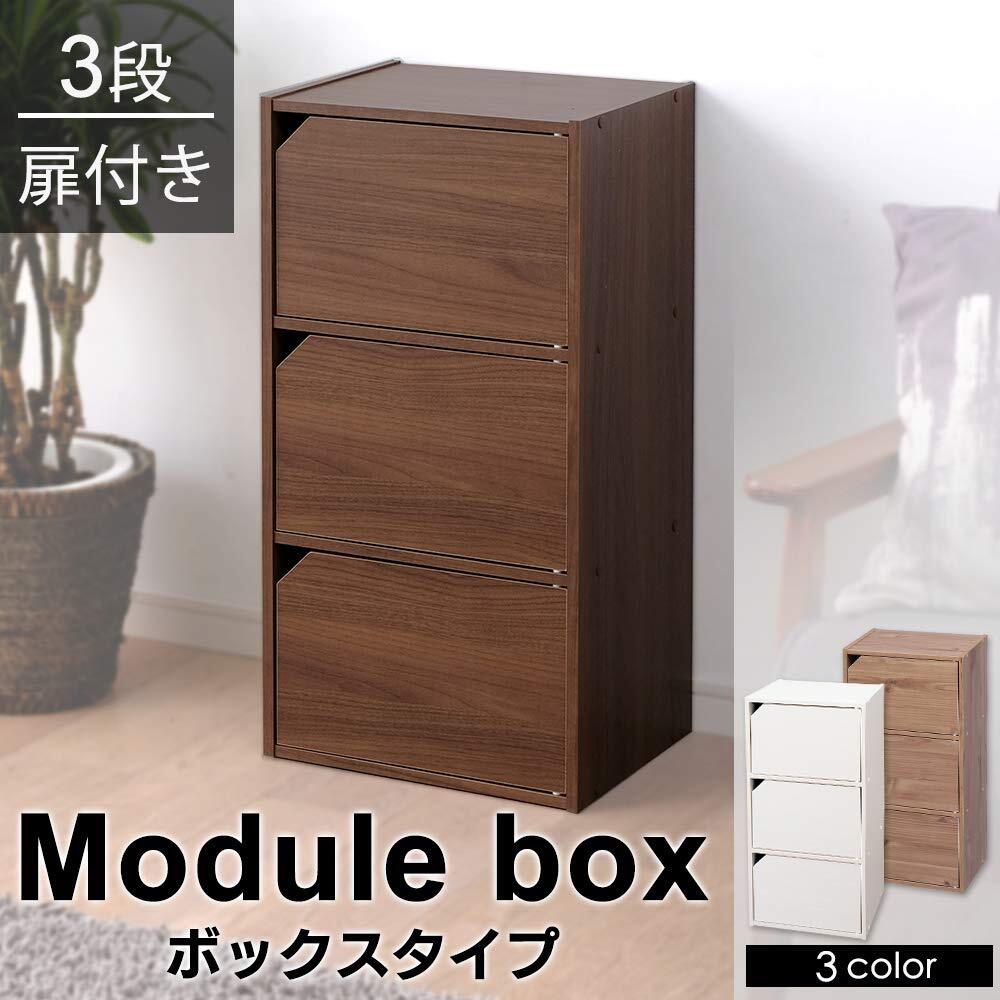 アイリスオーヤマ カラーボックス 収納ボックス 本棚 扉付き 3段 幅36.6×奥行29×高さ73.2cm ウォールナットブラウン モジュールボックス MDB-3D