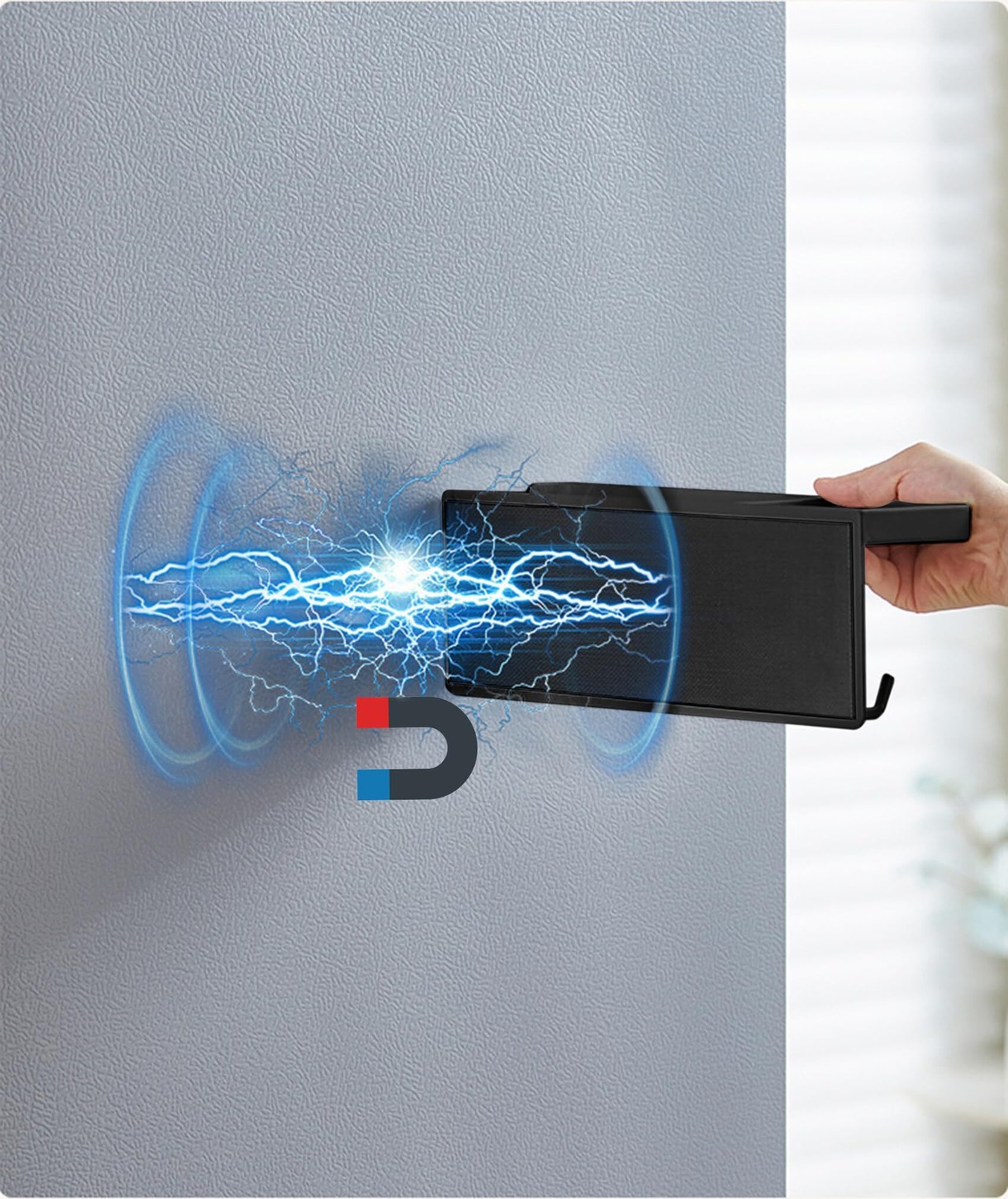 【使用説明】壁が平らで金属材質であれば、どこでも取り付け、移働できます。壁面が汚れていると十分な接着強度が得られない場合がありますので、設置前に汚れを落として乾燥させてください