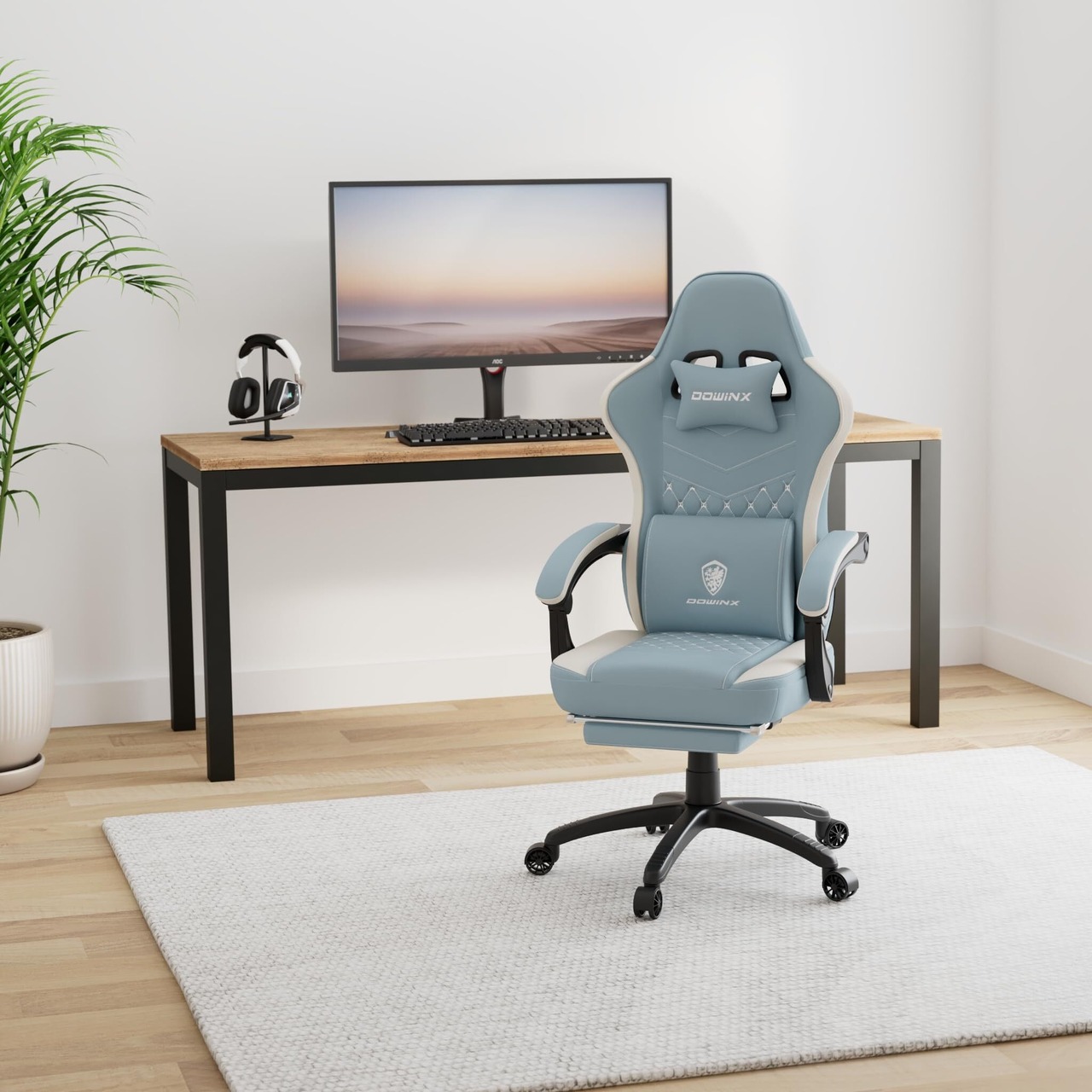 ゲーミングチェア 椅子 チェア ファブリック 涼感ジェルシート オットマン付き オフィスチェア パソコンチェア フットレスト デスクチェア ゲーム用 布 ポケットコイル PCチェア ハイバック ソファー座り心地 スカイブルー