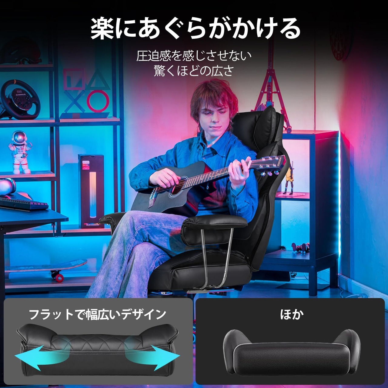 【特価セール】GTRacing ゲーミングチェア デスクチェア オフィスチェア 上質なPUレザー オットマン 椅子 イス テレワーク 腰痛対策 pcチェア 蒸れない ソファーの座り心地 【キルティング技術】【ふわふわPP綿採用】 【安心の非再生ウレタン採用】【ポケットコイル採用】 分区サポート 肉厚クッション リクライニング 広い座面 ハイバック 高さ調節 GT205-BLK
