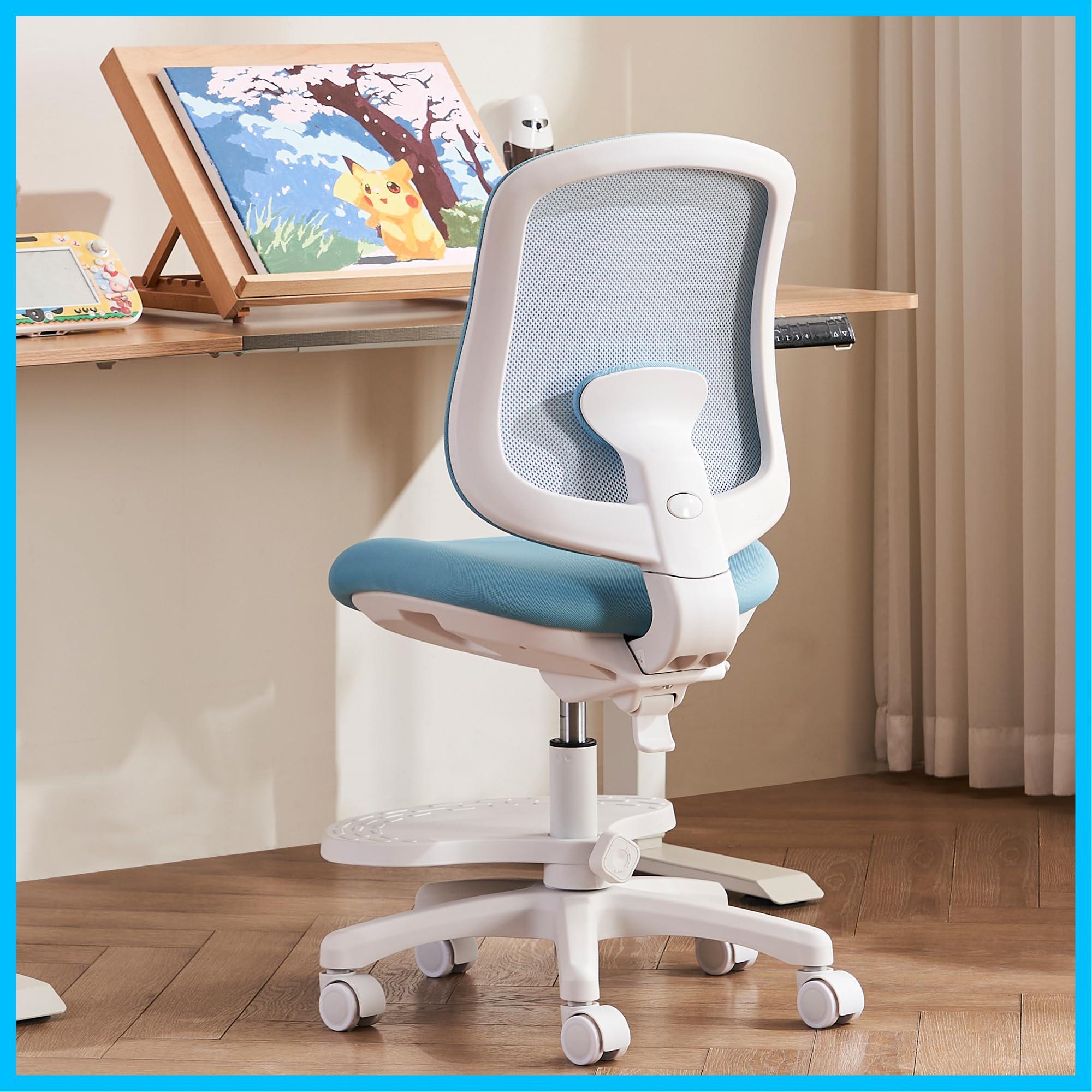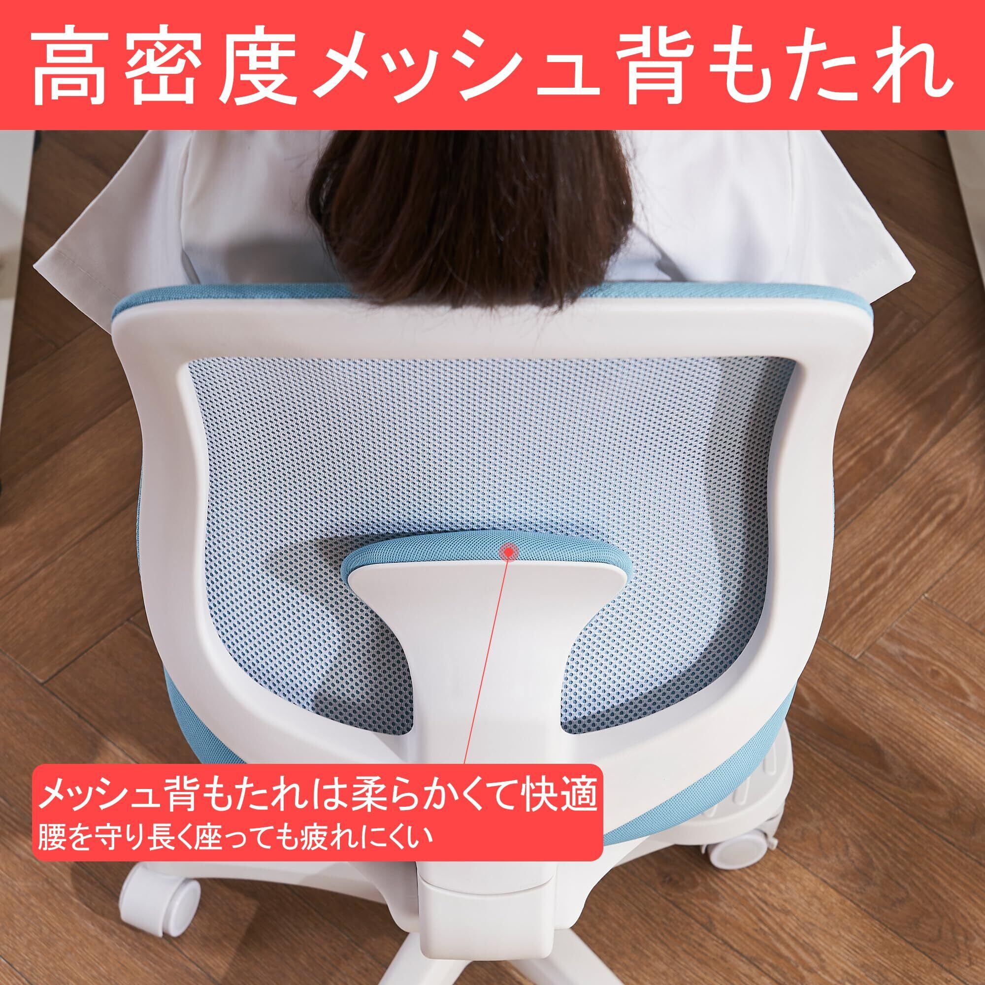 MOCHHOFU学習椅子 勉強椅子 姿勢矯正 小学生 子供 学習チェア 回転 勉強机 椅子 キャスター付き ホワイト 背もたれ調節 足置き 高さ調節 かわいい 座面高さ調節可能(Blue) [並行輸入品]