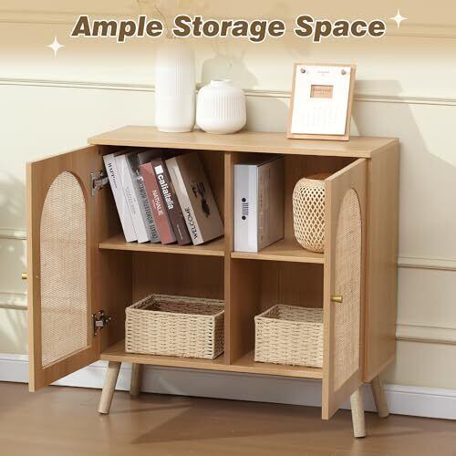 キャビネット サイドボード 収納棚 大容量 リビング ローボード ラタン調 ラタン風 2段 扉付き リビングボード 洋服 タンス 収納 箪笥 リビング ランドリーチェスト 整理タンス 北欧 木目調 おしゃれ