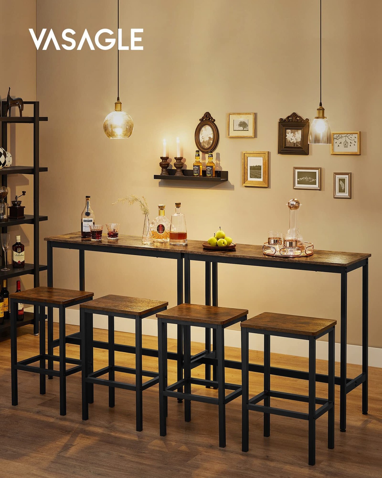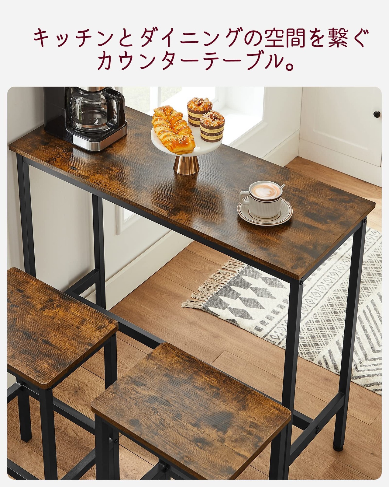 VASAGLE カウンターテーブル チェア 3点セット 木目調 ヴィンテージ ダイニングセット 天然木 省スペース パソコンデスク 作業台 木製 おしゃれ 北欧 幅100cmお洒落 シンプル ハイテーブル パソコンデスク おしゃれ LBT218B01