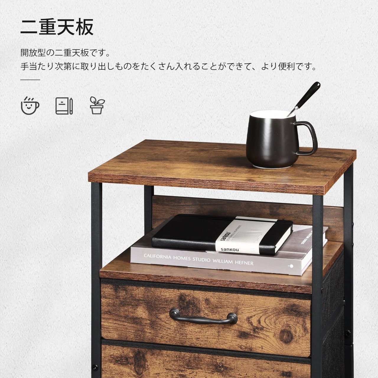 【収納力】天板が二重になっているので、手に取るものが多くなり、収納スペースが増えました。引き出しが三つあるので、あまり使わない物や小物を入れることができます。ホコリを防ぐだけでなく、雑多に見えません。配色は様々なシーンに適しています。サイドテーブル、ソファーテーブル、オフィスキャビネットなどに使うことができます。