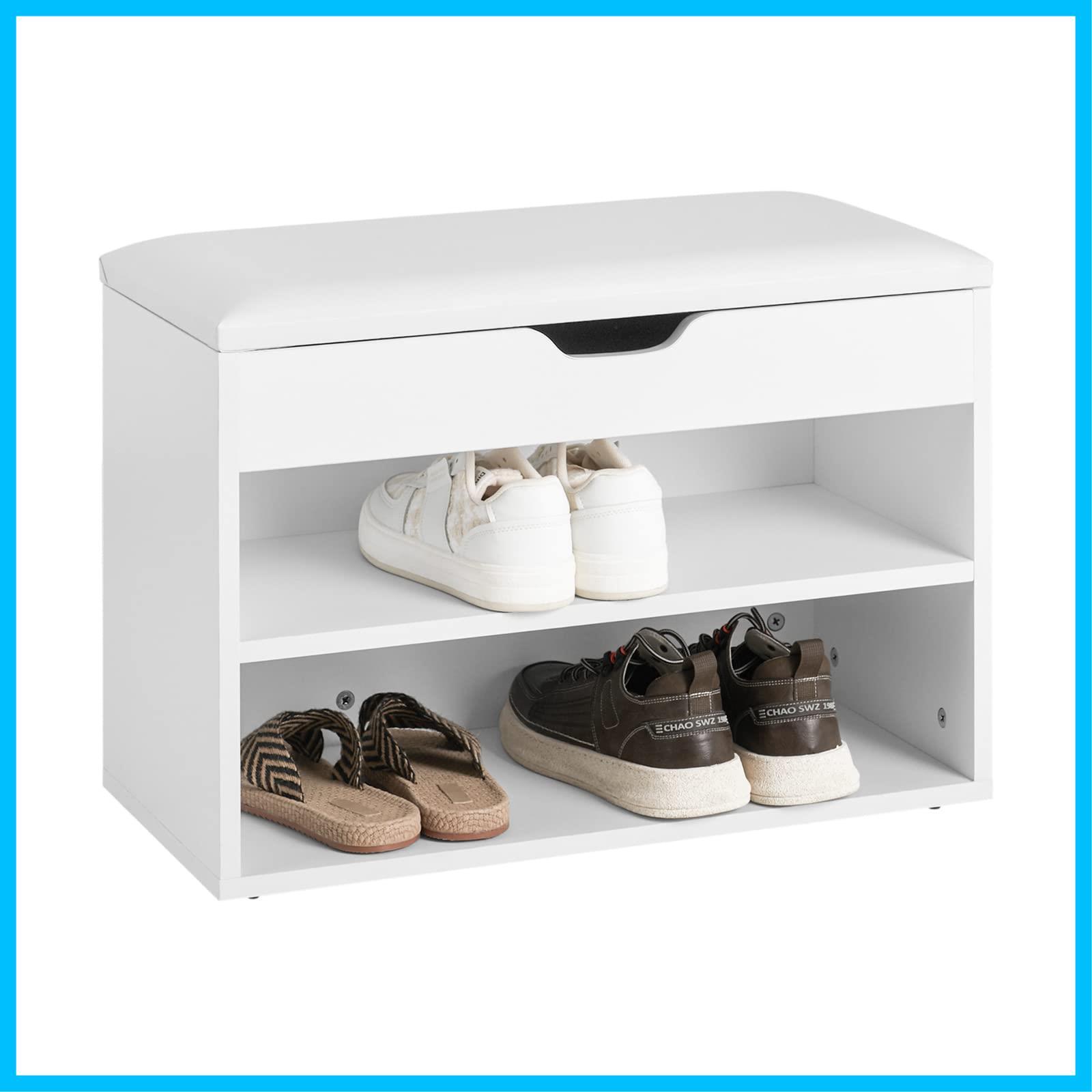 【在庫セール】SoBuy 玄関ベンチ シューズラック 下駄箱 靴箱 幅60*奥行30*高さ44cm 小物収納 シューズボックス 収納ベンチ 玄関収納 靴入れ 収納 スツール 靴棚 玄関椅子(FSR25-W)